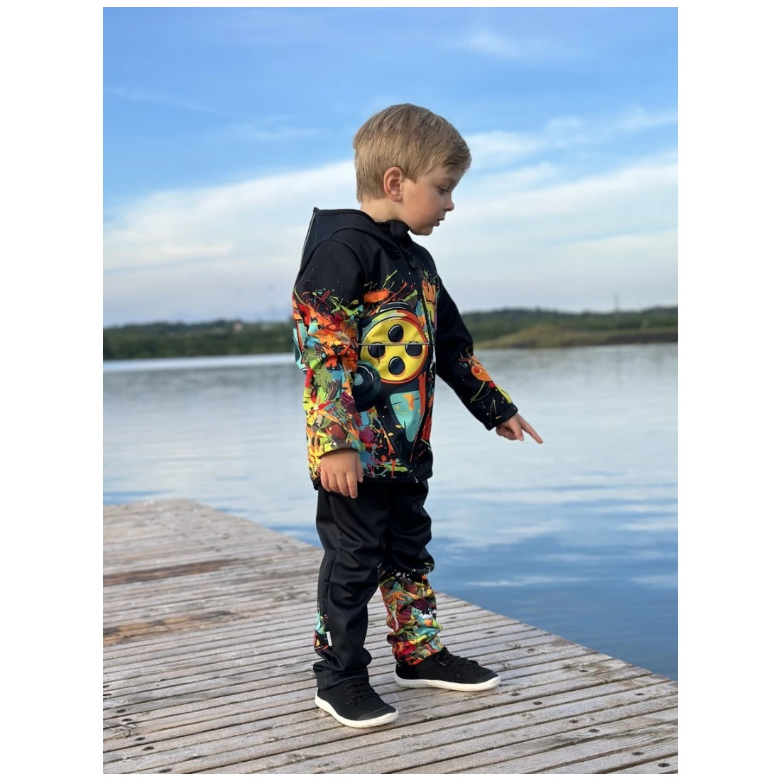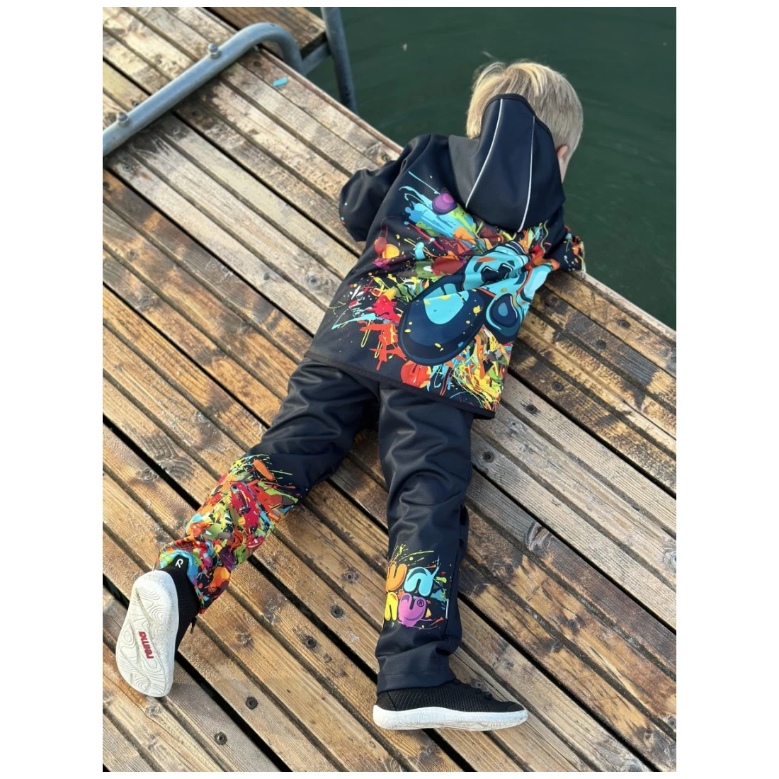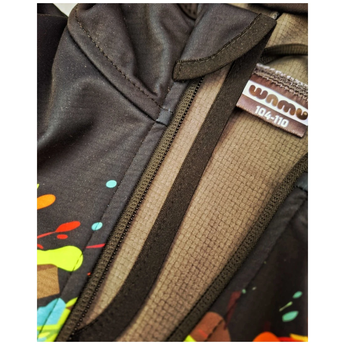Los diseños únicos se imprimen en softshell mediante impresión por sublimación, donde el material se comprime a alta presión. El softshell puede parecer más fino temporalmente. A pesar de ello, el material sigue siendo adecuado para condiciones de clima frío. El grosor del material vuelve a su estado original después del primer lavado.