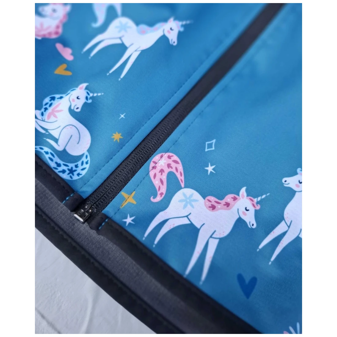 Los diseños únicos se imprimen en softshell mediante impresión por sublimación, donde el material se comprime a alta presión. El softshell puede parecer más fino temporalmente. A pesar de ello, el material sigue siendo adecuado para condiciones de clima frío. El grosor del material vuelve a su estado original después del primer lavado.