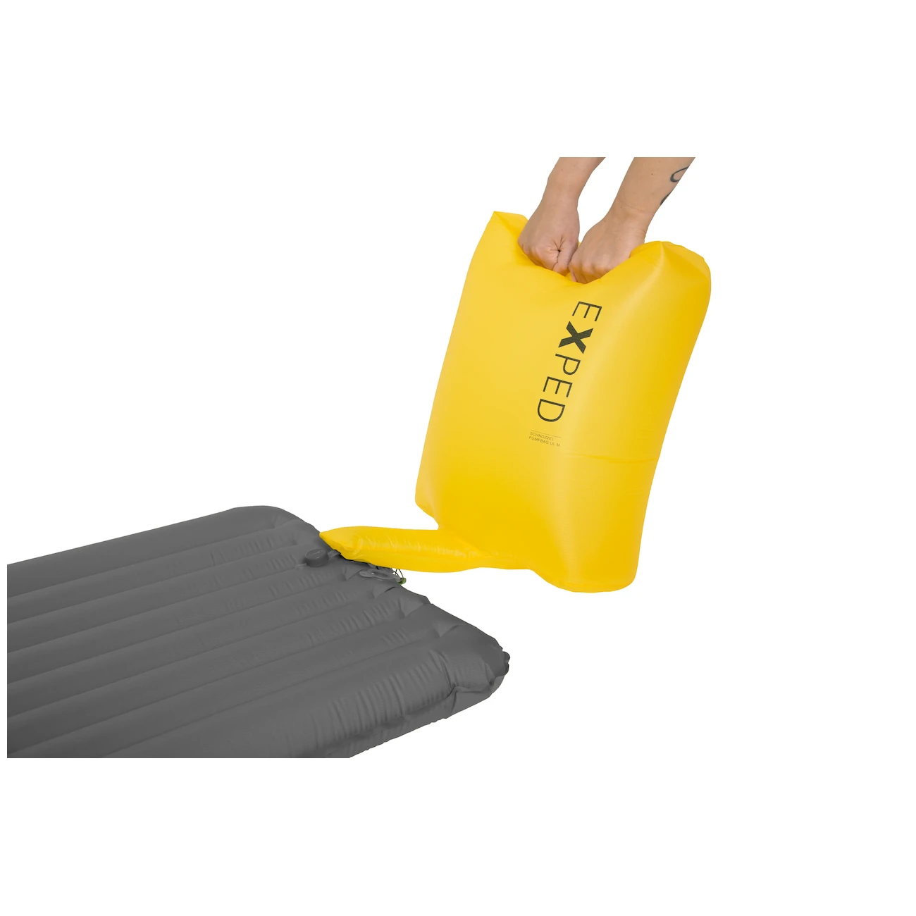 Una gran ventaja es también la funda, gracias a la cual puedes inflar la colchoneta de forma rápida y sin esfuerzo. Solo tienes que colocar la mano en el lugar indicado y bombear el aire presionando.
