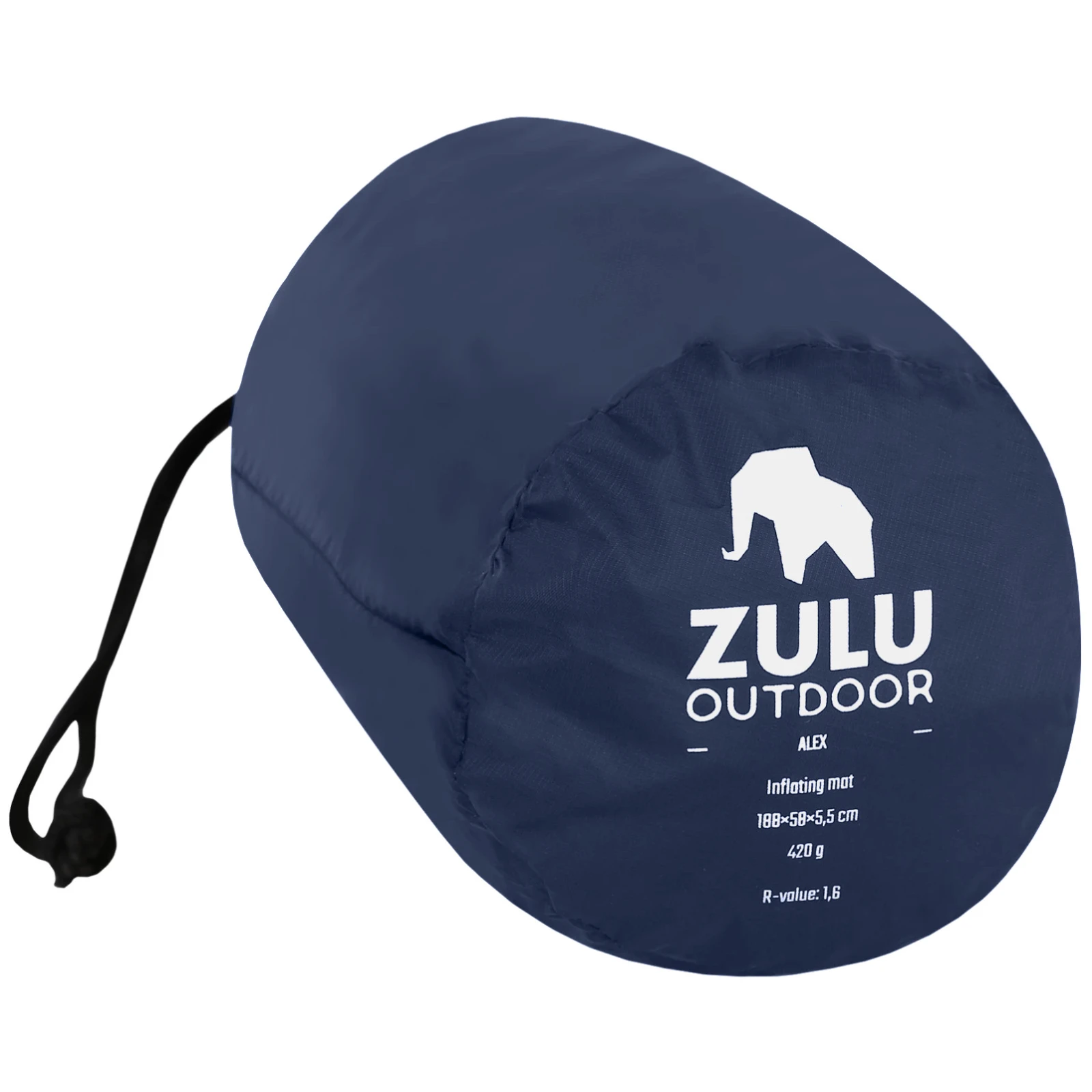 La colchoneta inflable Zulu Alex, con sus 420 g, es una de las colchonetas inflables más ligeras del mercado. La construcción de la cavidad proporciona una gran estabilidad y una sensación de superficie plana para mejorar la comodidad. El saco de dormir rellena las cavidades individuales del colchón, aumentando así el confort térmico. Al mismo tiempo, puede inflar y guardar rápidamente el colchón.