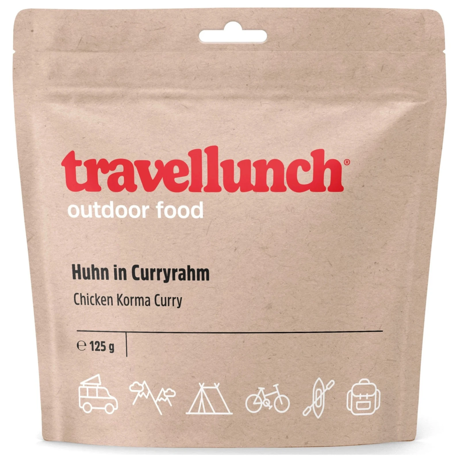 Alimento deshidratado profesional Travellunch Pollo al curry Korma con arroz contiene todas las sustancias importantes para el cuerpo humano, incluso en situaciones de rendimiento extremo, y además tiene un delicioso sabor.