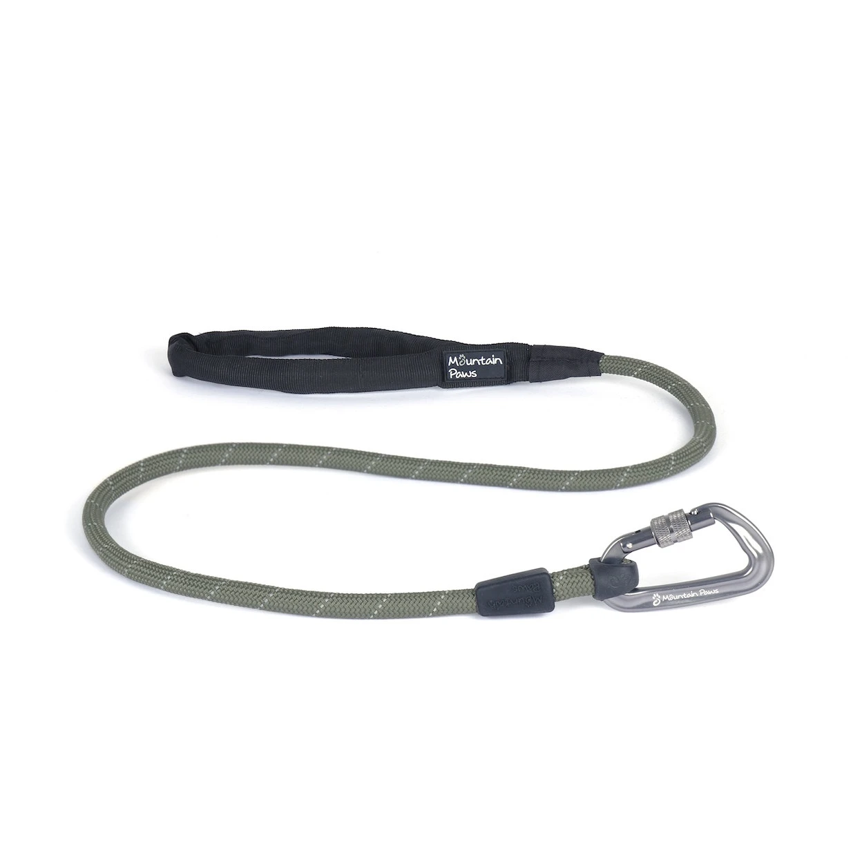 La correa de cuerda para perros de la marca Mountain Paws ofrece un mango suave, un mosquetón de seguridad, calidad, resistencia y un diseño inspirado en el equipo de escalada.