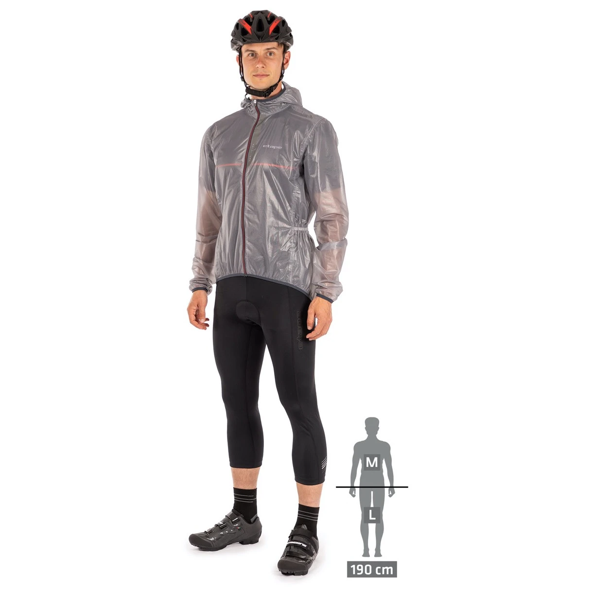 La chaqueta cortavientos o impermeable Etape Vento está fabricada con un ligero material resistente al viento y al agua, AquaShell, con costuras selladas y paneles laterales de malla AirMesh para una mejor ventilación y transpirabilidad. Es muy fácil de guardar en su propio bolsillo, tiene un panel trasero extendido e incluye elementos reflectantes destacados.