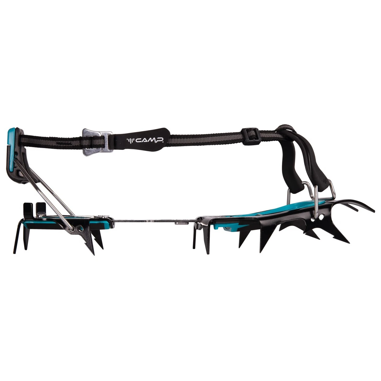 el cierre de las correas en la barra de unión permite plegar las crampones