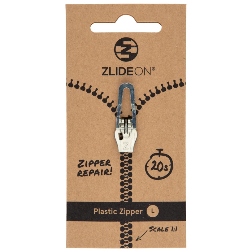 ¿Se te ha roto la cremallera de la chaqueta o la mochila? Elija el innovador control deslizante de repuesto ZlideOn Plastic Zipper L y lo tendrá reparado en 20 segundos y listo para salir de excursión.