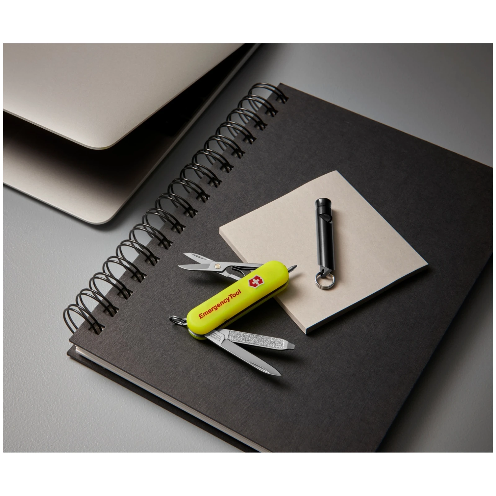 Debido a su pequeño tamaño, es realmente muy adecuado como llavero original. 7 funciones, el tamaño de la navaja es compacto de 58 mm. En comparación con el modelo básico, el modelo Lite está equipado con una luz LED. También incluye navaja, lima de uñas con destornillador, tijeras, llavero y bolígrafo. Su empuñadura amarilla brilla en la oscuridad. El paquete también incluye un silbato para señalar tu ubicación en caso de emergencia.