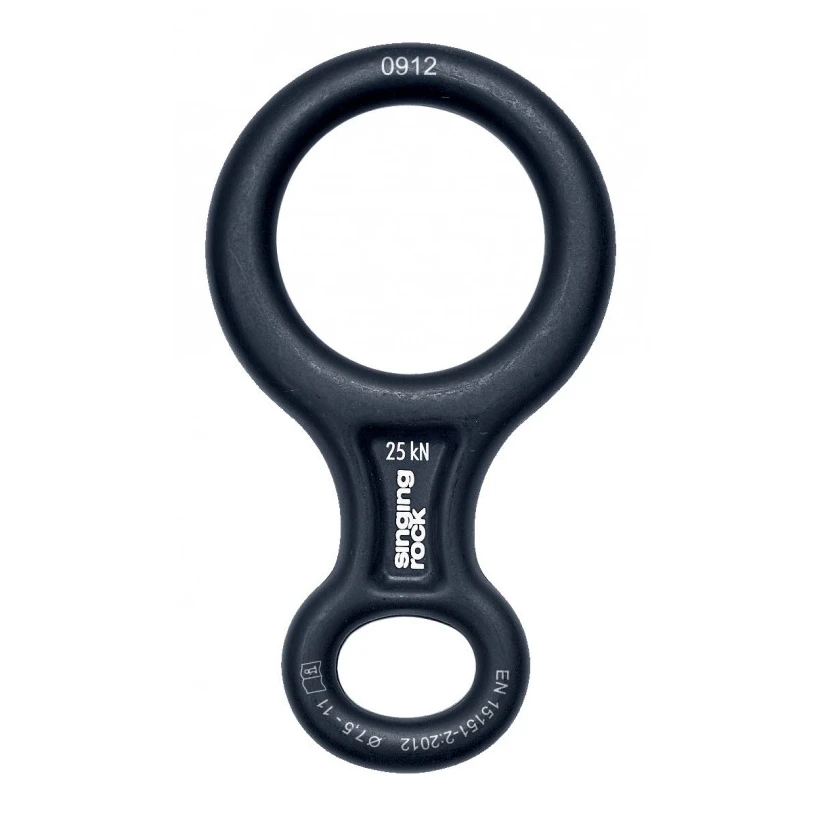 LaFigura de rápel M del fabricante Singing Rock es una figura de ocho ligera fabricada en duraluminio. Gracias a la figura de ocho, el rapel será más fácil y la fricción de la cuerda será mínima. La figura de ocho pesa 104 gramos y tiene dos orificios para cuerdas de menor diámetro, pero con un amplio rango de 7,5-11 mm. El agujero más pequeño tiene forma elíptica. La resistencia total del eje es de 25 kN.