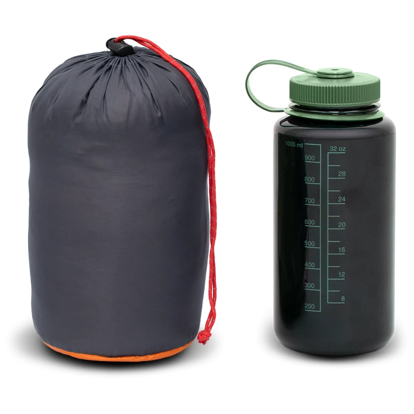 Además, el saco de dormir cuenta con un botón a presión en el cuello, cordones internos y un bolsillo interior. Los materiales no contienen PFAS y, en el caso del plumón, cumplen con la certificación Responsible Down Standart, que garantiza buenas condiciones en la cría de animales.