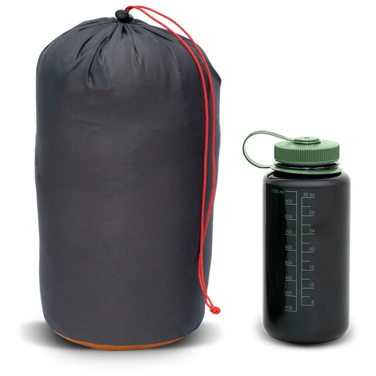 La construcción optimiza el loft y la eficiencia térmica sin volumen innecesario. Tiene un relleno de plumón de pato con un poder de relleno de 850 cuin y una proporción de plumón de 90/10, que aísla perfectamente. A ello contribuye el cuello térmico de nueva forma, que envuelve firmemente los hombros y evita la pérdida de calor. La capucha tiene cordones a ambos lados. La cómoda forma de momia 3D mejora el aislamiento térmico y proporciona comodidad. El espacio alrededor de los pies está especialmente adaptado con forma de aleta de tiburón, lo que permite que las piernas permanezcan estiradas en una posición natural durante la noche y proporciona aislamiento adicional.