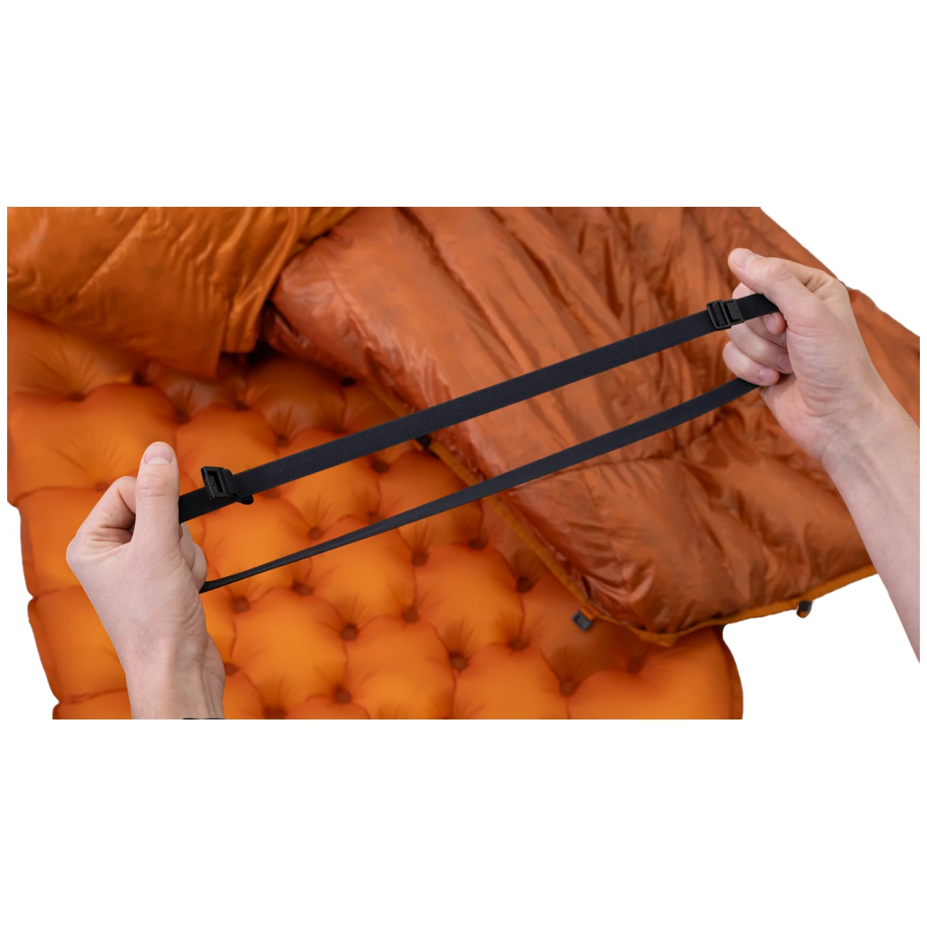 Por supuesto, cuenta con una cremallera de alta calidad en toda su longitud con protección antienganches. El material exterior ripstop es resistente y resistente a daños mecánicos. Varios puntos de sujeción con ribete elástico sujetan perfectamente el saco de dormir a la colchoneta.