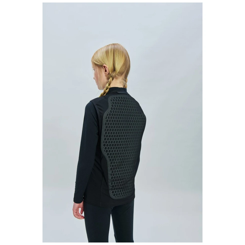 La placa trasera está construida con una estructura similar a un panal de abejas, inspirada en la naturaleza, para proporcionar resistencia y protección, manteniendo al mismo tiempo el peso lo más bajo posible. Gracias a su bajo peso, el protector permanece en el lugar correcto en la espalda y copia sus contornos, sin necesidad de una correa para mantenerlo en su sitio.