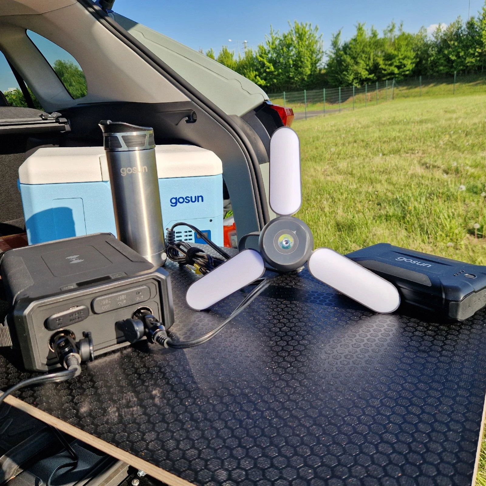 La estación de carga única Gosun con una enorme capacidad de 307.2 Wh / 96,000 mAh es lo suficientemente grande como para cargar tu teléfono inteligente todos los días durante casi un mes. La powerbank está equipada con una gran cantidad de conectores para diferentes formas de cargar tus dispositivos a 12/24V.