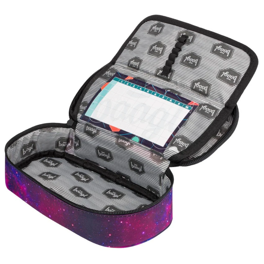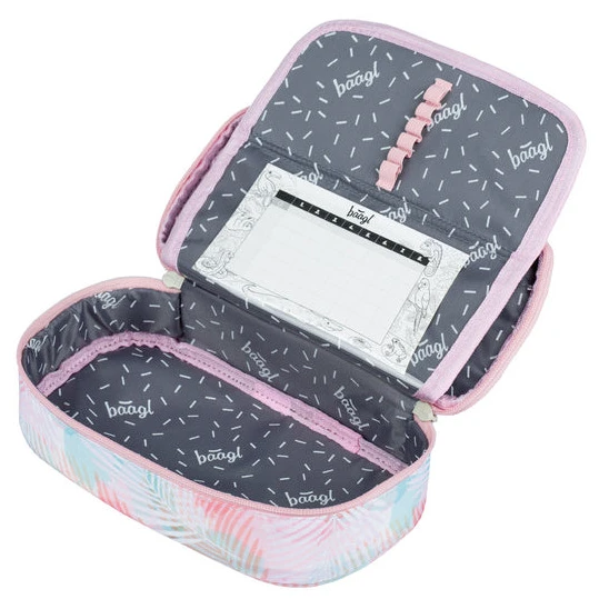 El estuche escolar rígido Etue de la marca checa Baagl está diseñado tanto para chicas como para chicos. El estuche tiene cremallera, con doble solapa abatible, prácticos elásticos de goma, un bolsillo con cremallera y un bolsillo para el horario en el interior.