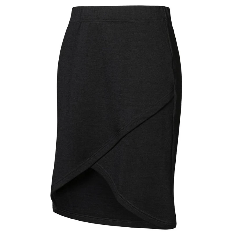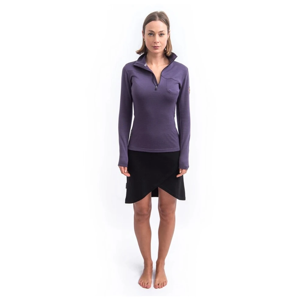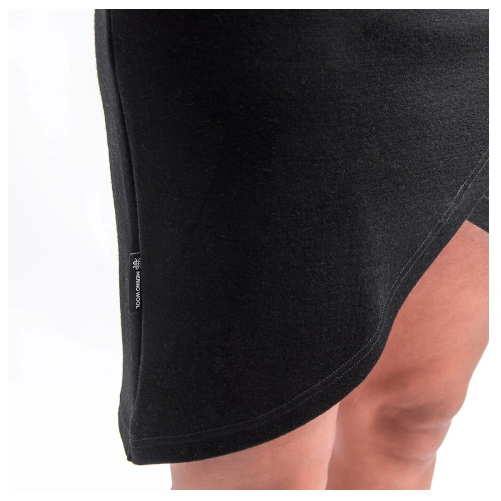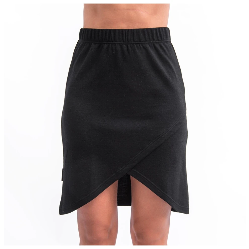 El material de doble capa combina lana merino suave de Nueva Zelanda con seda de poliamida. La lana merino transpirable proporciona una termorregulación natural: calienta en climas helados, pero también evacua eficazmente la humedad durante un esfuerzo elevado. Gracias a su contenido de lanolina, ofrece un efecto antibacteriano, por lo que la falda se mantiene fresca incluso durante un uso prolongado. La seda de poliamida proporciona al tejido firmeza, elasticidad y estabilidad de forma, lo que prolonga su vida útil y aumenta la comodidad al moverse.