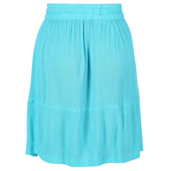 La falda de mujer súper suave y súper elegante de la marca Haniska Regatta es perfecta para el verano. Falda veraniega de mujer con viscosa similar a la seda muy suave al tacto. La falda está cortada en un elegante diseño escalonado y presenta un moderno acabado de arrugas tejidas. La cintura se sujeta con un cordón. Combínalo con zapatillas y un top.