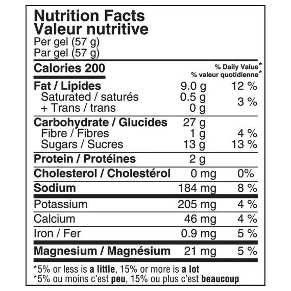 - 27 g de carbohidratos en una proporción 1:1 (rápidos/complejos) para una energía equilibrada