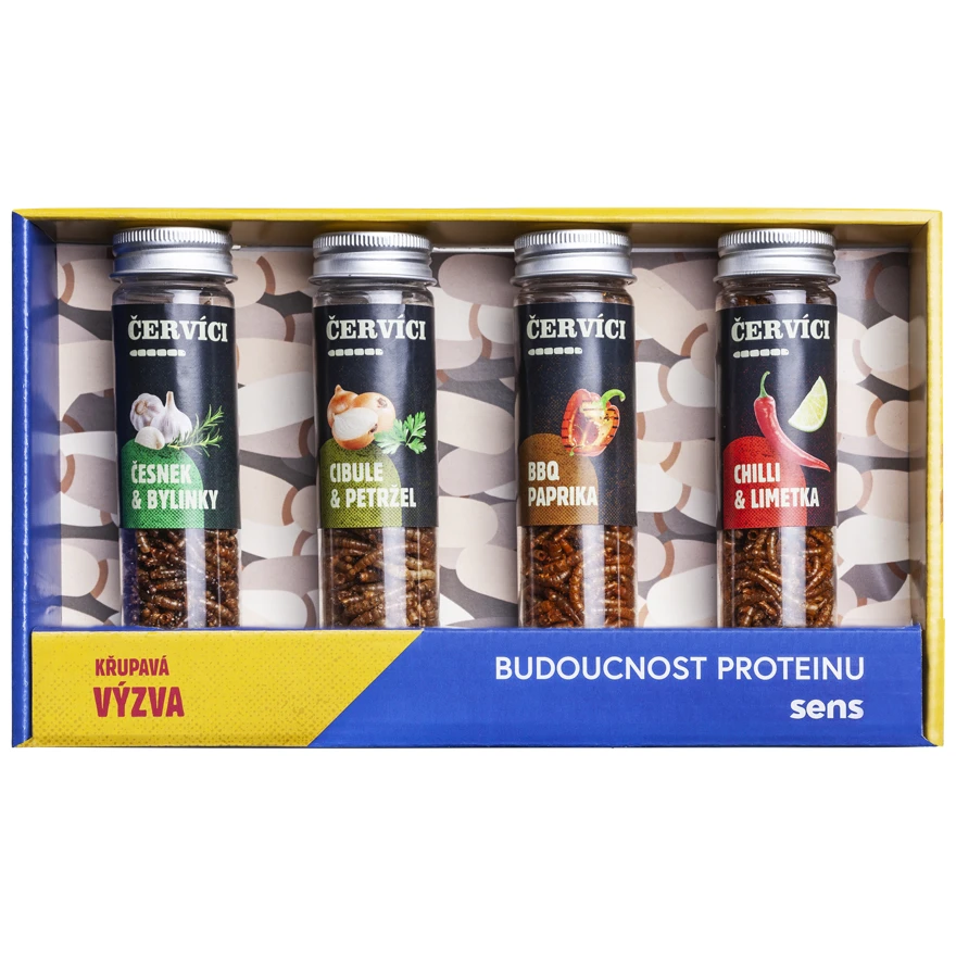 La diversión comienza, pero no termina, con mirar a través del tubo de ensayo. Uno es suficiente para 10 personas. Mientras los primeros empiezan a degustar, los demás pueden leer en la caja datos curiosos sobre el consumo de insectos. ¿Es éste el futuro de las proteínas?
