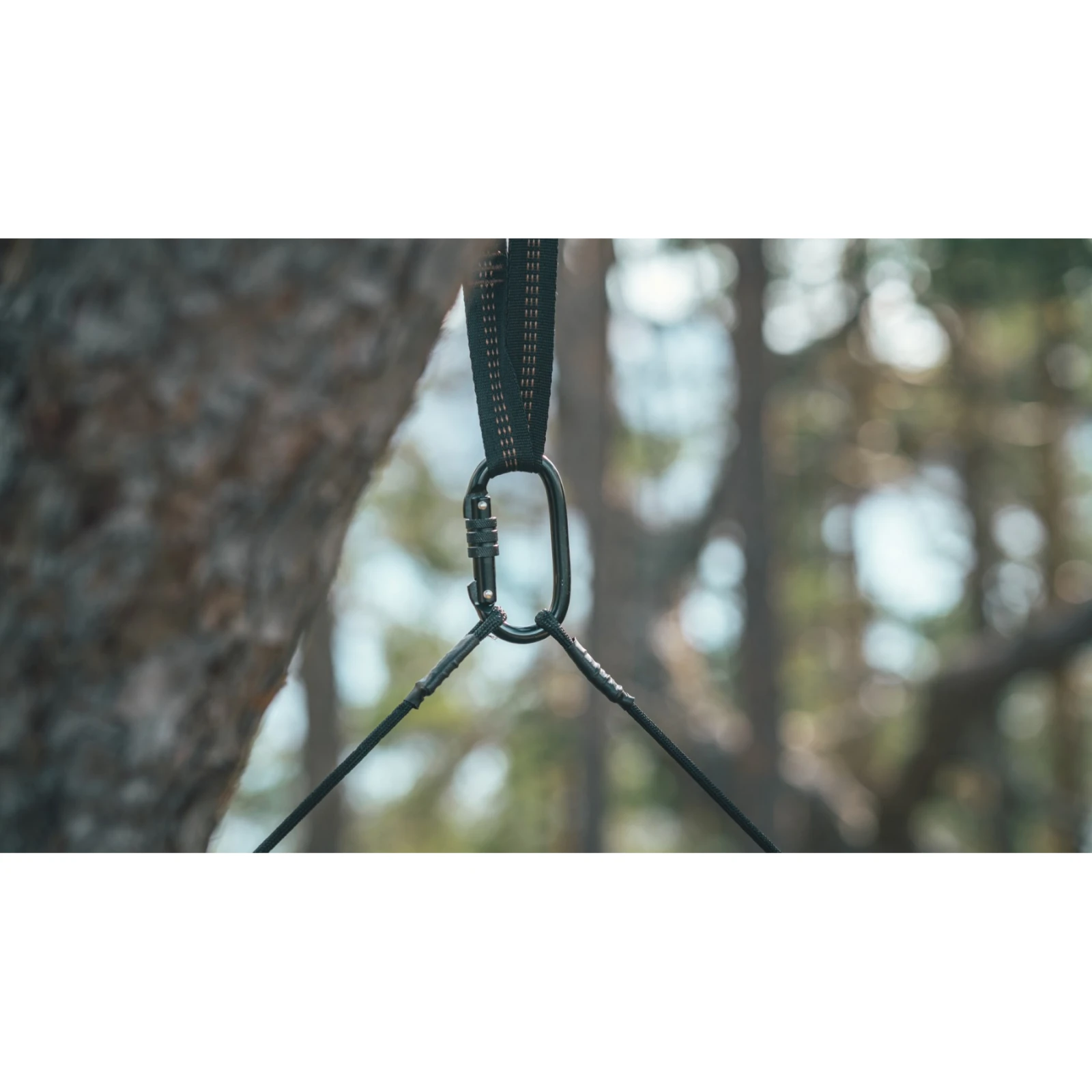 El paquete incluye hamaca, correa de cadena, palo plegable, mosquetón y funda de transporte.
