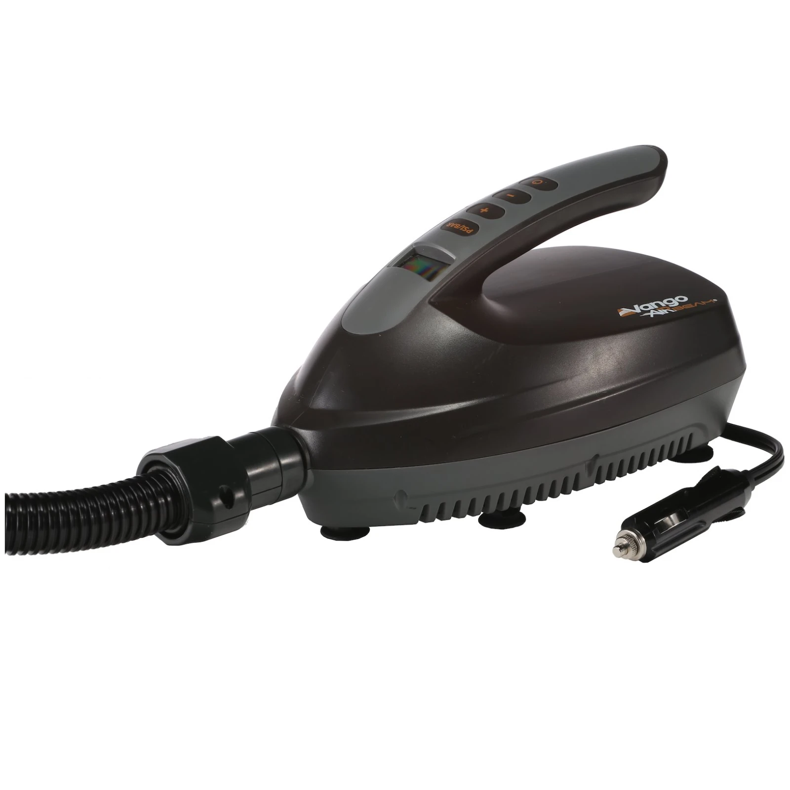 La bomba AirBeam Zephyr Pump eléctrica de la empresa Vango con un potente motor (hasta 16 PSI) infla de forma fiable todo lo que se te ocurra. La bomba está equipada con una pantalla LED digital situada en la práctica empuñadura. La bomba también dispone de desconexión automática para evitar el inflado excesivo, dos boquillas y funciones que facilitan y agilizan el montaje de tiendas y toldos. La bomba también cuenta con pies de plástico que proporcionan estabilidad durante el inflado. La bomba funciona con una fuente de alimentación de 12 V CC. Puedes utilizar un cable de 5 metros para conectar la fuente de alimentación a la toma del encendedor del coche.