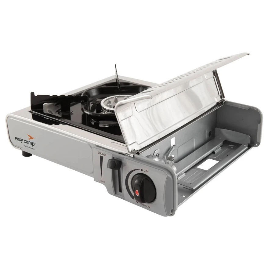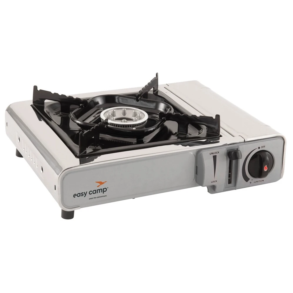 Al pulsar el botón del hornillo, se genera un impulso de tensión y, a continuación, una chispa enciende el gas liberado. Un práctico artilugio que evita tener que llevar cerillas o mechero.
