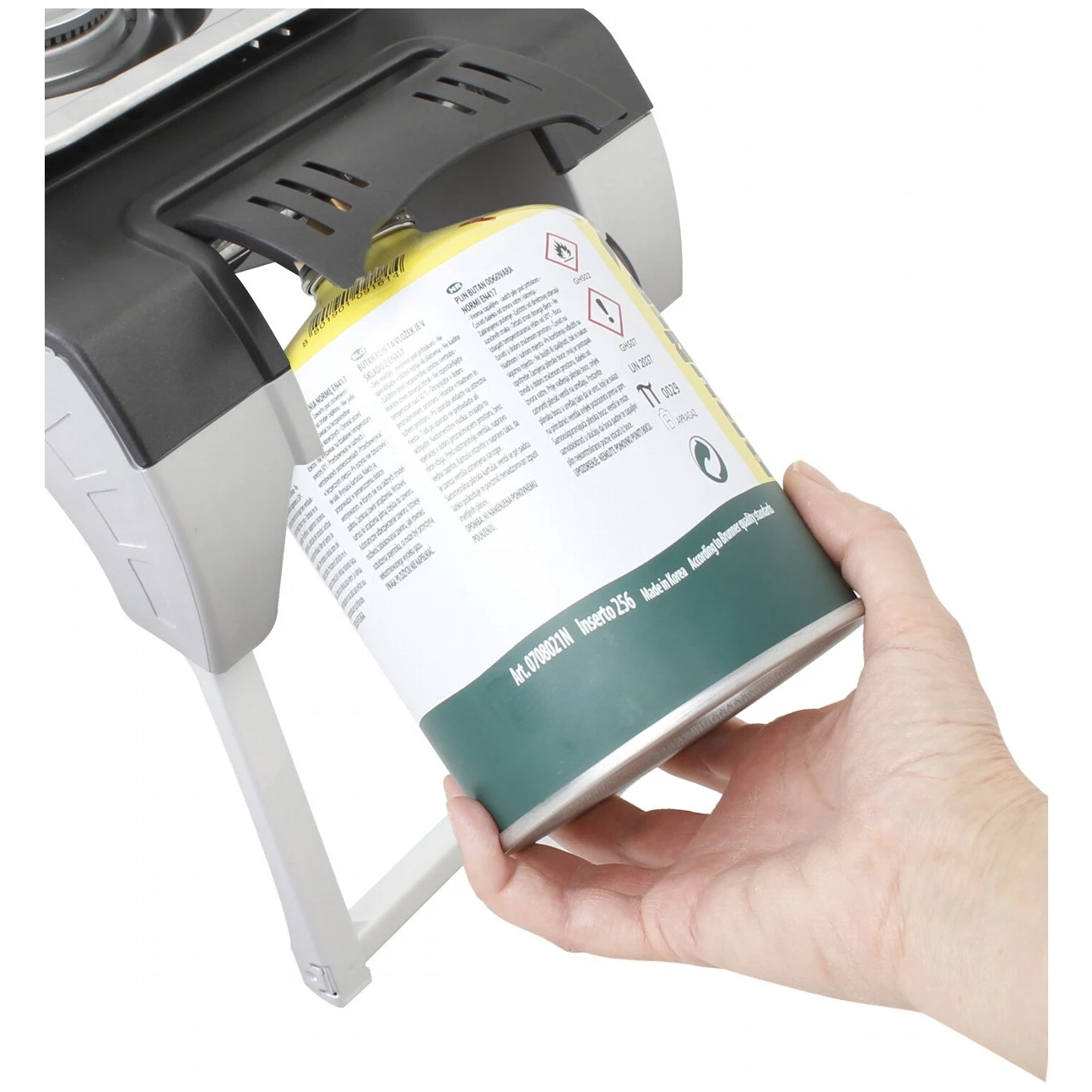 Al pulsar el botón del hornillo, se genera un impulso de tensión y, a continuación, una chispa enciende el gas liberado. Un práctico artilugio que evita tener que llevar cerillas o mechero.