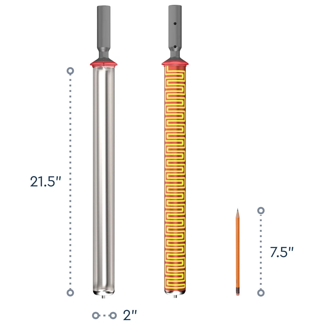 - Dimensiones del horno: 7,6 cm de diámetro exterior, 5,8 cm de diámetro interior, 61 cm de longitud