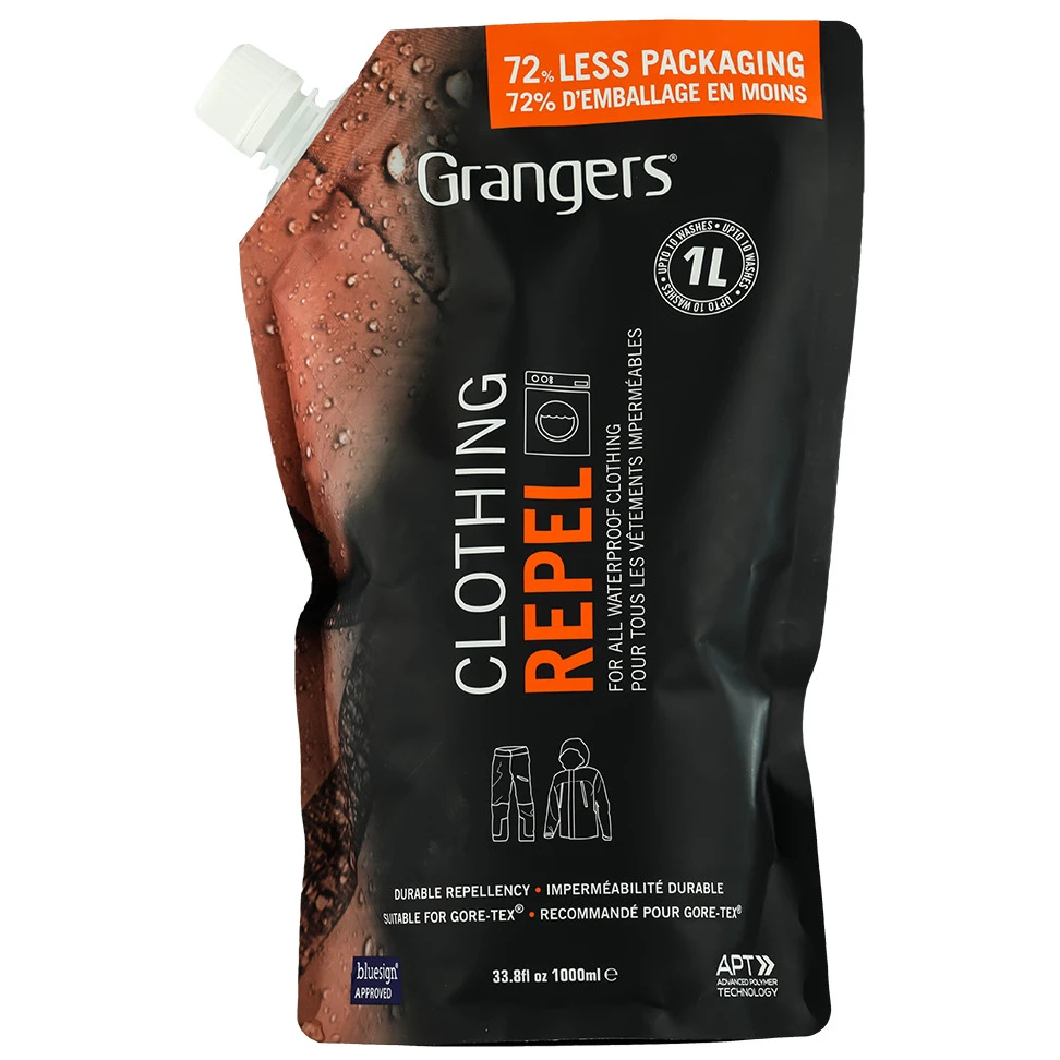 El impregnador líquido Clothing Repel de Granger confiere al material propiedades impermeables y resistentes a la suciedad durante el ciclo de lavado, al tiempo que mantiene la transpirabilidad. Este producto impregna de forma fiable y eficaz materiales técnicos y también es adecuado para membranas Gore-Tex y eVent. Clothing Repel restaura e intensifica la resistencia al agua de la ropa, además de ser muy suave y estar hecho pensando en el medio ambiente.