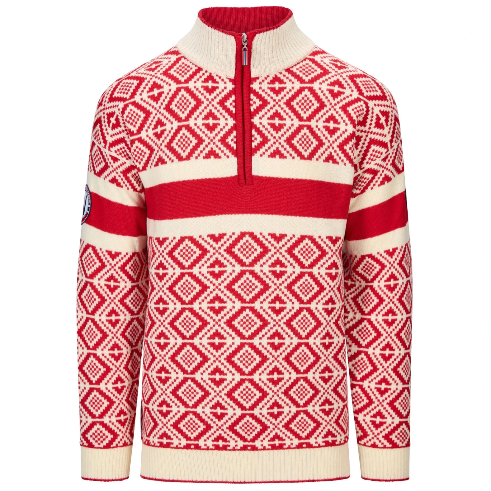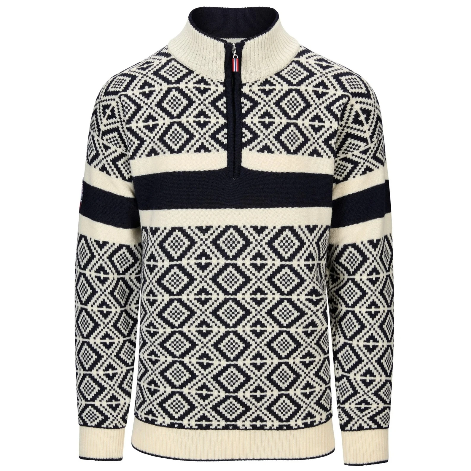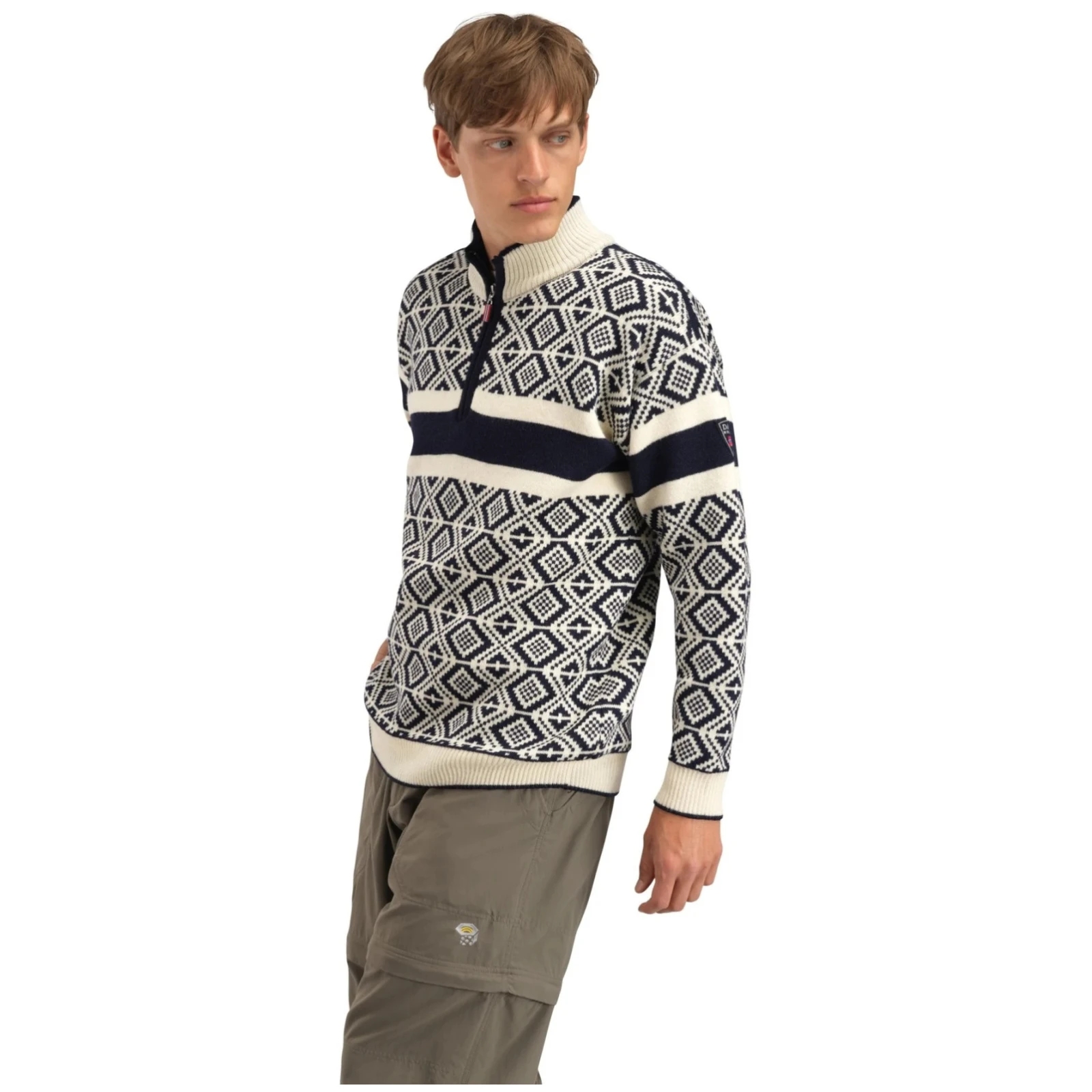 El cuello alto con media cremallera protege el cuello del frío y permite una fácil regulación de la temperatura. El suéter fue diseñado y tejido en Noruega – en el espíritu de la auténtica calidad de la marca Dale of Norway.