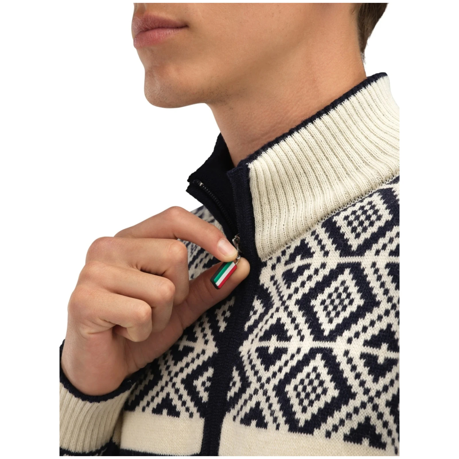 El suéter Cortina 2026 de la prestigiosa marca noruega Dale of Norway es el suéter oficial del equipo olímpico noruego para los JJOO de 2026 en Cortina d’Ampezzo.