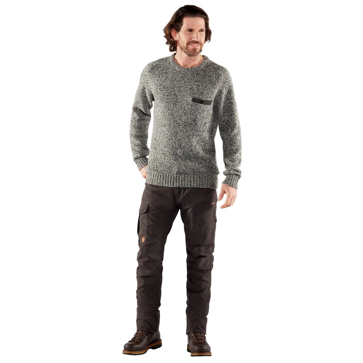 El jersey de hombre Lada Round-neck Sweater Fjällräven es un jersey de punto clásico confeccionado con una mezcla de lana de cordero que abriga tanto en el senderismo como en el uso diario.