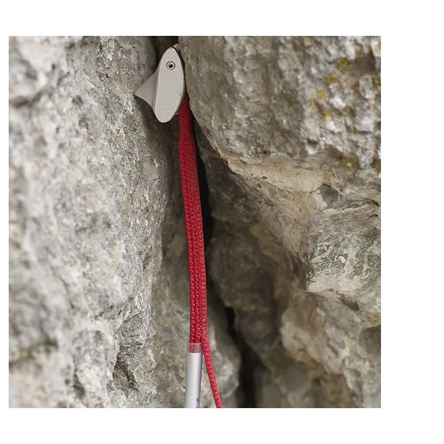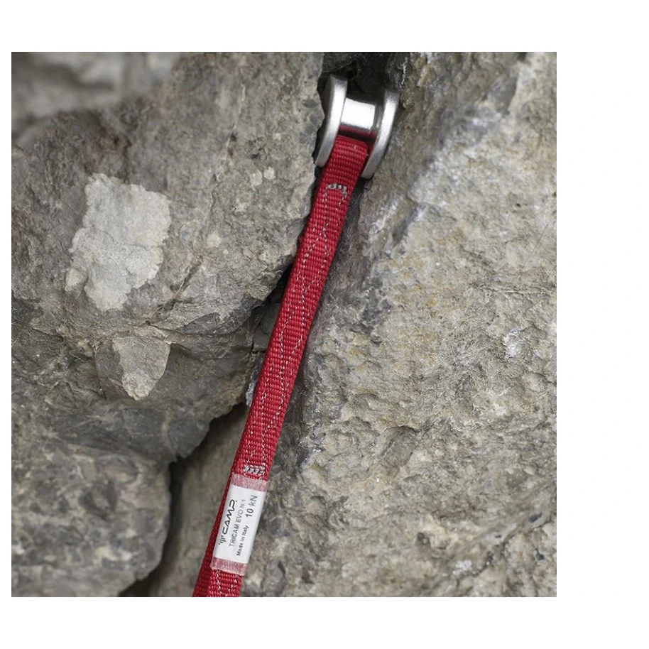 El juego de empotradores Camp Tricam Evo es una de las herramientas clásicas de todo escalador clásico. Gracias a su forma triangular, son muy versátiles y se sujetan en fisuras horizontales tanto horizontal como verticalmente. También pueden utilizarse para arreglar agujeros y lugares donde no cabe nada más, o juntas heladas. Son muy ligeros gracias a la fijación solo en la cinta. Además, la cinta está reforzada con una costura en la parte superior para que sea más fácil colocarla con una mano y aumenta la resistencia al desgarro en los bordes. Ofrece un modo de colocación activo y dos pasivos. La segunda colocación pasiva es posible gracias a la cabeza reforzada en forma de cuña y también se puede colocar a lo ancho.