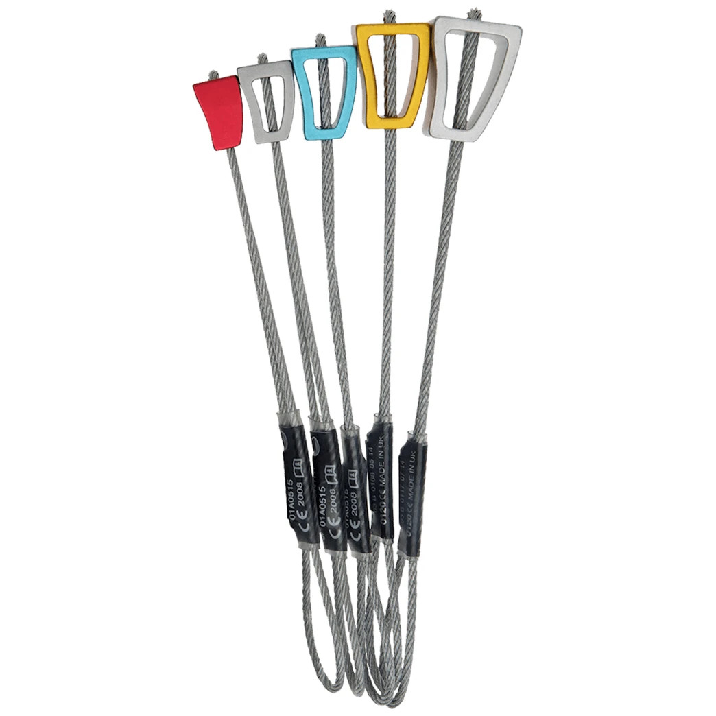 Las cabezas de los empotradores están anodizadas en varios colores, lo que facilita y acelera significativamente la selección del tamaño correcto en la reunión o en un paso difícil. La gama ampliada de empotradores tiene un total de catorce tamaños; el set 6-10 cubre fisuras de medianas a anchas, y complementa idealmente el set más pequeño 1-5 como segunda parte del aseguramiento tradicional completo.