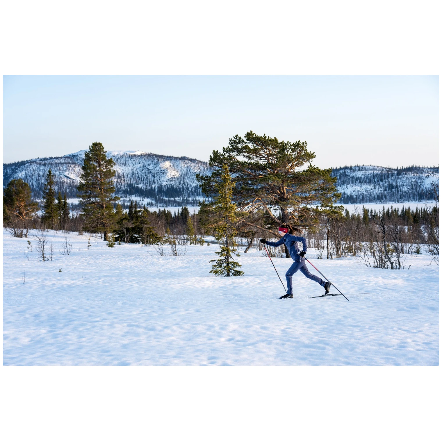 El pantalón tiene cintura elástica con cordón y trabillas para sujetar una bufanda. Incluye dos bolsillos con cremallera. La abertura en la parte inferior de las perneras facilita la colocación y permite ajustar la anchura de las perneras a la circunferencia del calzado. Los elementos reflectantes para aumentar la seguridad son algo natural.