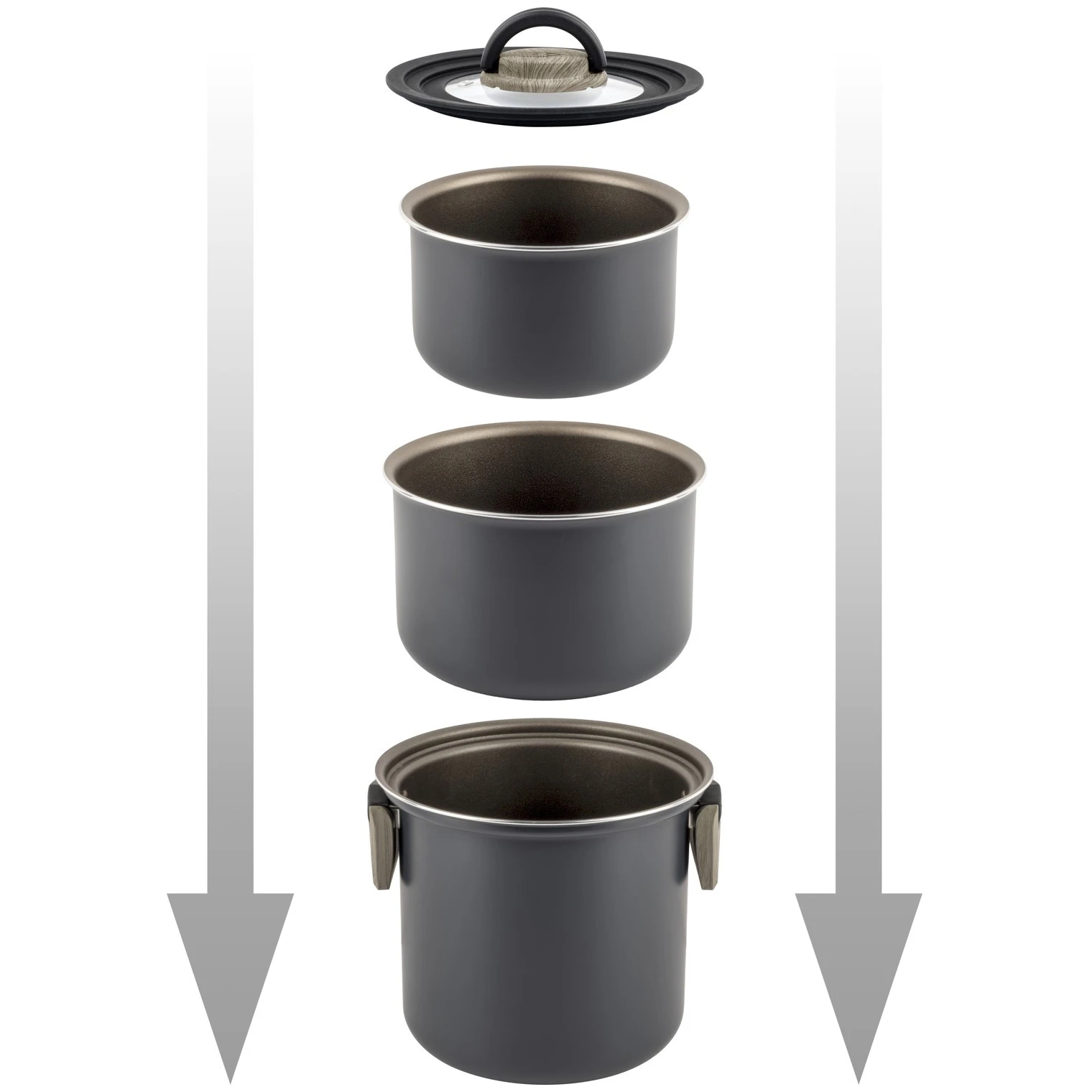 El innovador juego de ollas Brunner Torralta Ø 18 cm es la solución perfecta para los propietarios de autocaravanas y barcos que buscan utensilios de cocina eficientes.
