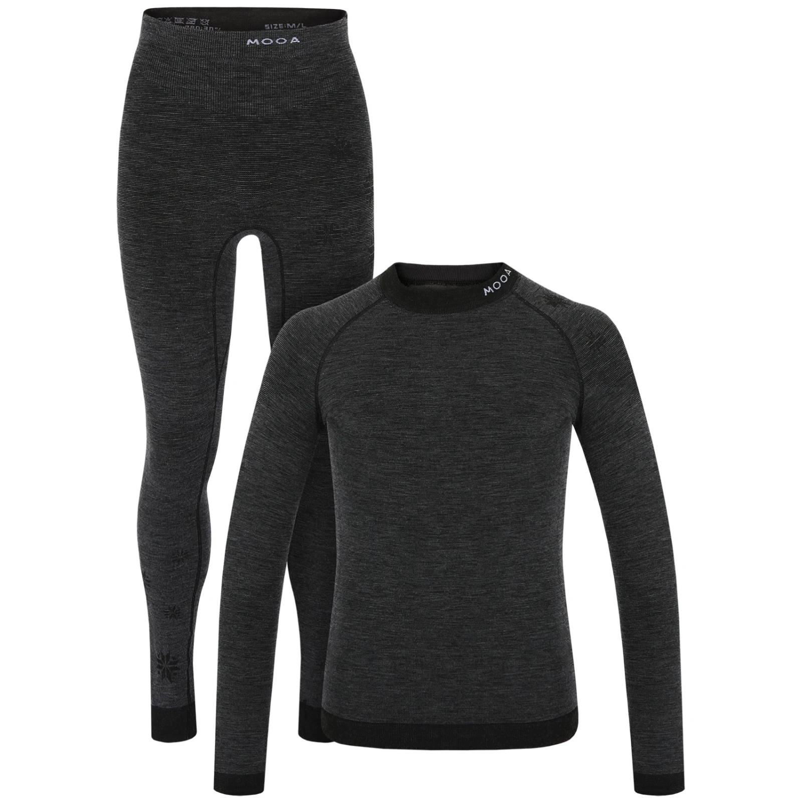 MOOA Merino Seamless es un conjunto funcional para hombre diseñado como primera capa para el movimiento activo y el uso diario, que combina una camiseta de manga larga y unos pantalones de una sola unidad técnicamente coordinada. Ambas partes utilizan una combinación de lana merino y fibras sintéticas, lo que ofrece un alto confort, elasticidad y funcionalidad fiable para el movimiento activo y el uso diario. El material muy elástico se adapta perfectamente a la forma del cuerpo y lo abraza cómodamente.