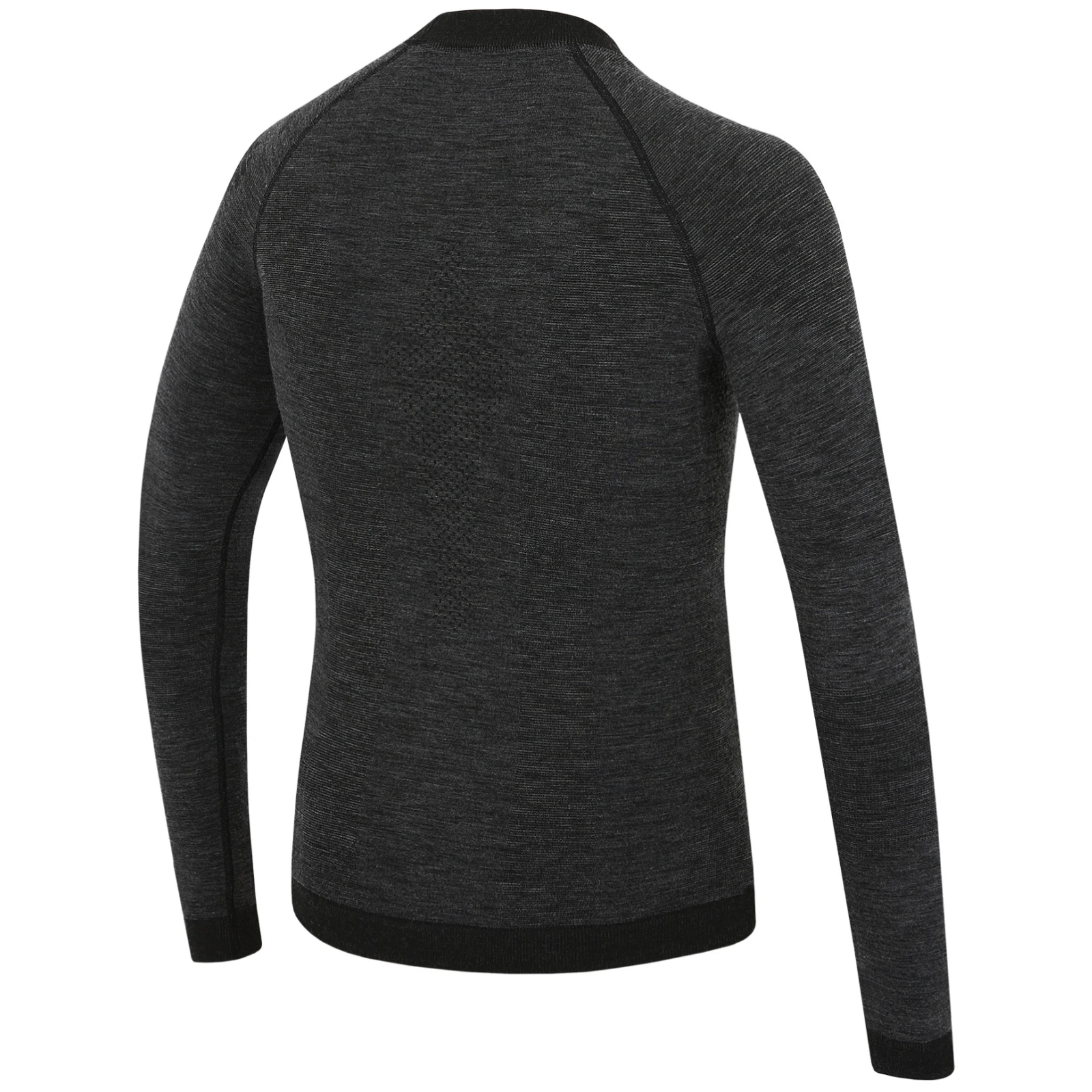 La lana merino ayuda a mantener el cuerpo caliente incluso cuando está ligeramente húmeda, mientras que las fibras sintéticas promueven un secado más rápido y una mayor durabilidad del material. La construcción sin costuras en la zona del torso minimiza la fricción y aumenta la comodidad al usar capas o durante un uso prolongado.