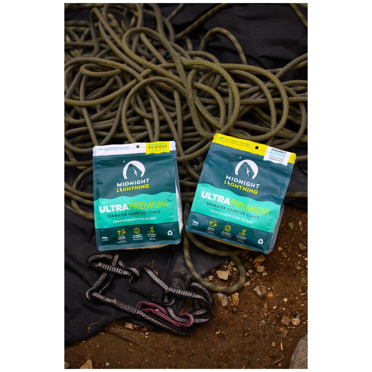 Midnight Lightning es una marca que se encarga de que en la roca o en la pared tu mano nunca resbale, y al mismo tiempo cuida nuestro planeta. La tiza proviene del agua de mar, no de una minería destructiva, y el embalaje es de materiales vegetales reciclables: sin un fuerte impacto en la naturaleza, pero con la misma sensación de un agarre firme.