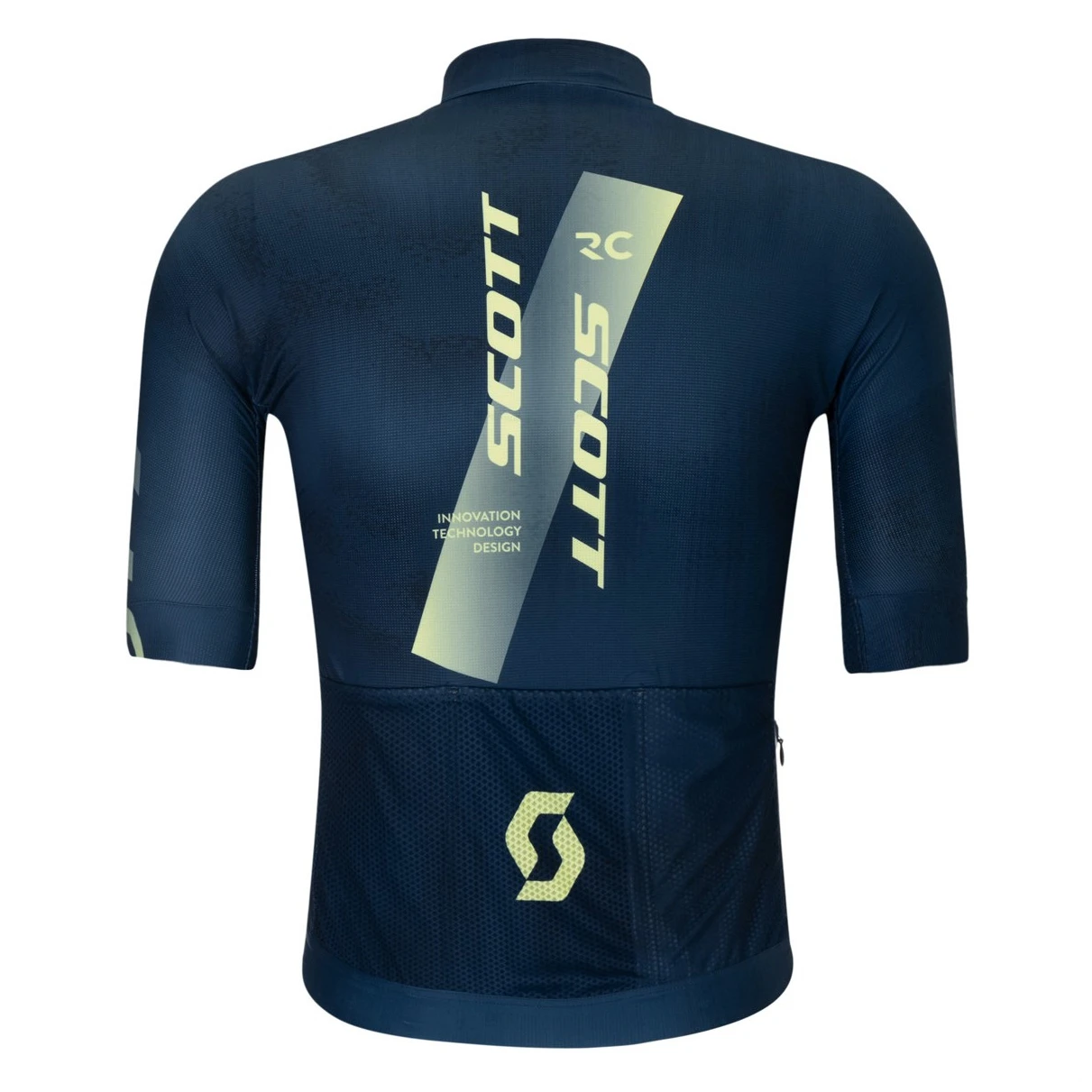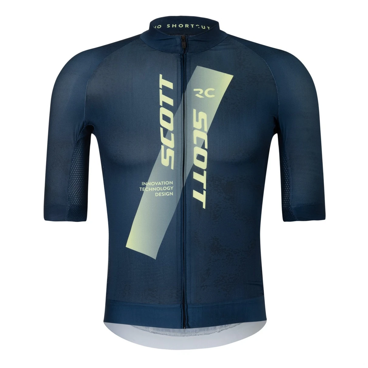 Scott RC Pro es un maillot de ciclismo para hombre de manga corta, ideal para competición y rendimiento con énfasis en la aerodinámica y la comodidad.