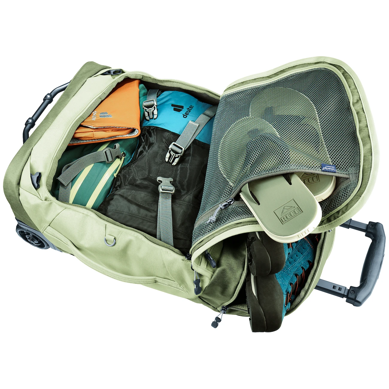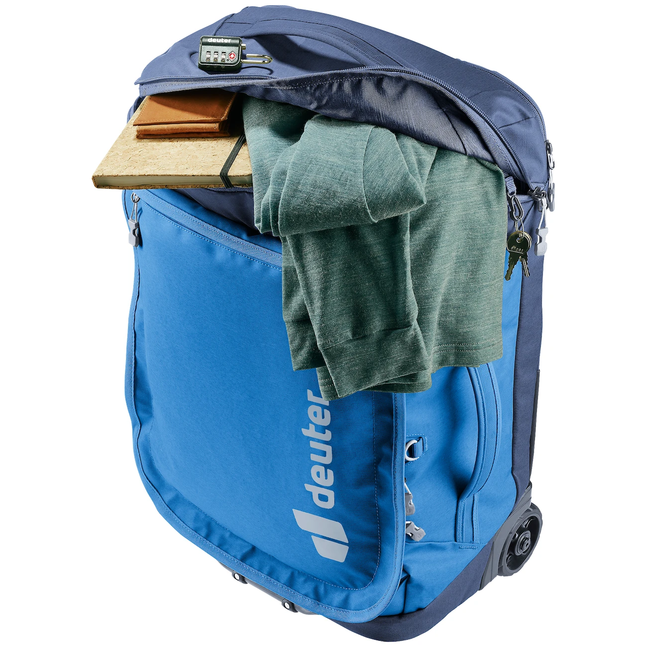 La maleta de viaje Duffel Pro Movo 36 del fabricante Deuter es adecuada para viajeros activos que viajan en una variedad de entornos. Combina una maleta clásica con ruedas y asa telescópica y una mochila con tirantes de alta calidad y bien acolchada que se guarda en un abrir y cerrar de ojos. También tiene asas resistentes para transportarlo fácilmente.