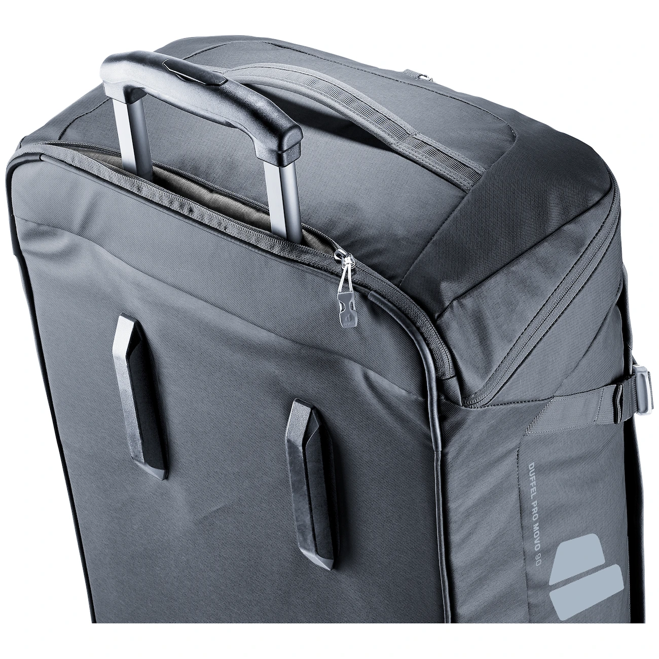 La maleta de viaje Duffel Pro Movo 90 del fabricante Deuter es adecuada para viajeros activos que viajan en una variedad de entornos. Combina una maleta clásica con ruedas y asa telescópica y una mochila con tirantes de alta calidad y bien acolchada que se guarda en un abrir y cerrar de ojos. También tiene asas resistentes para transportarlo fácilmente.