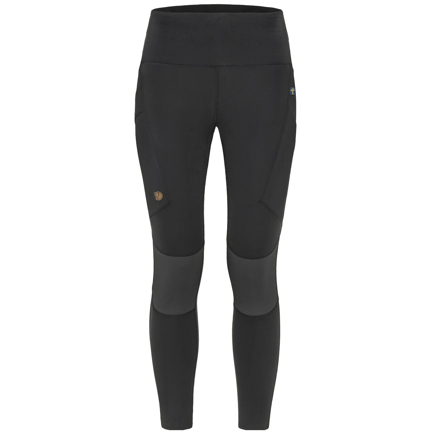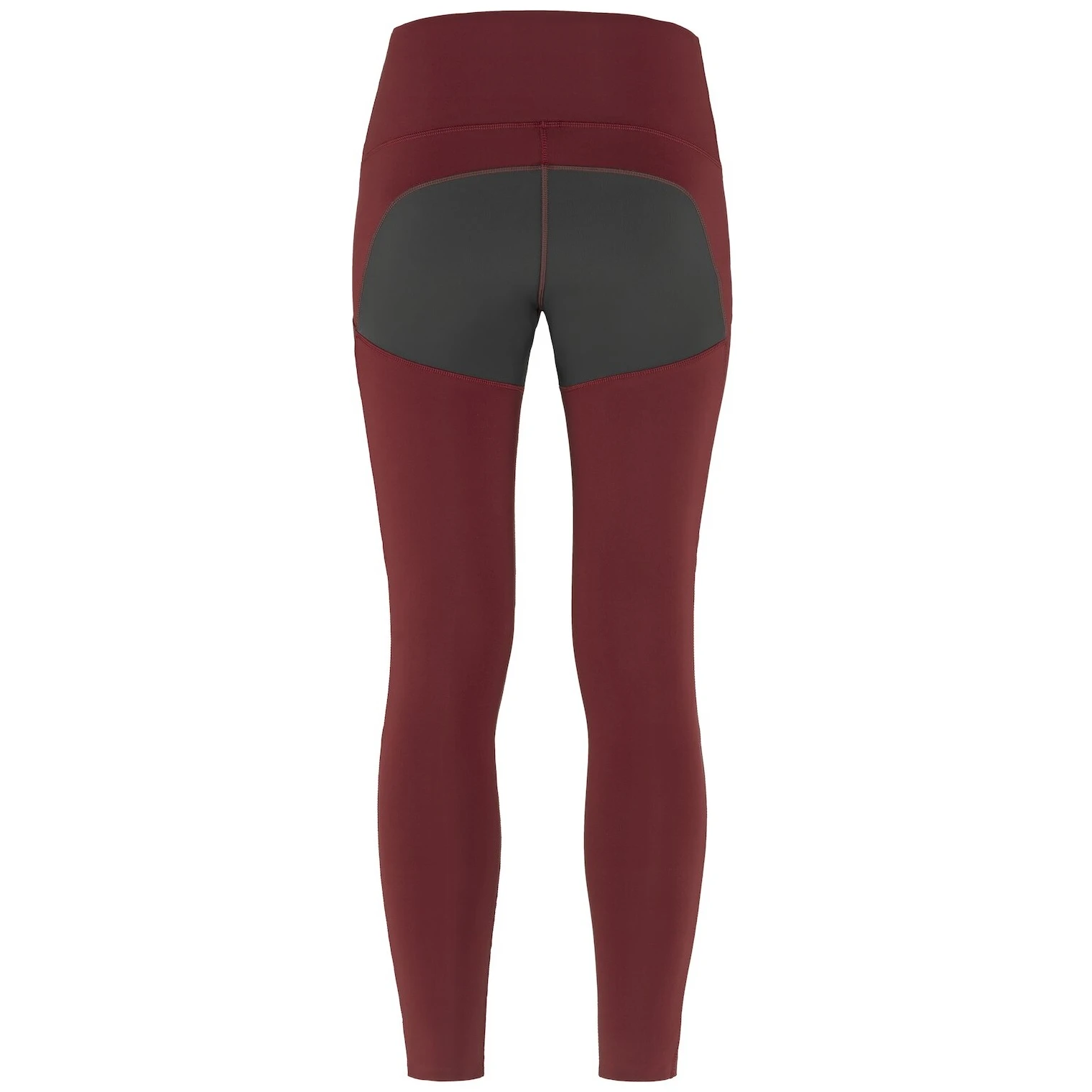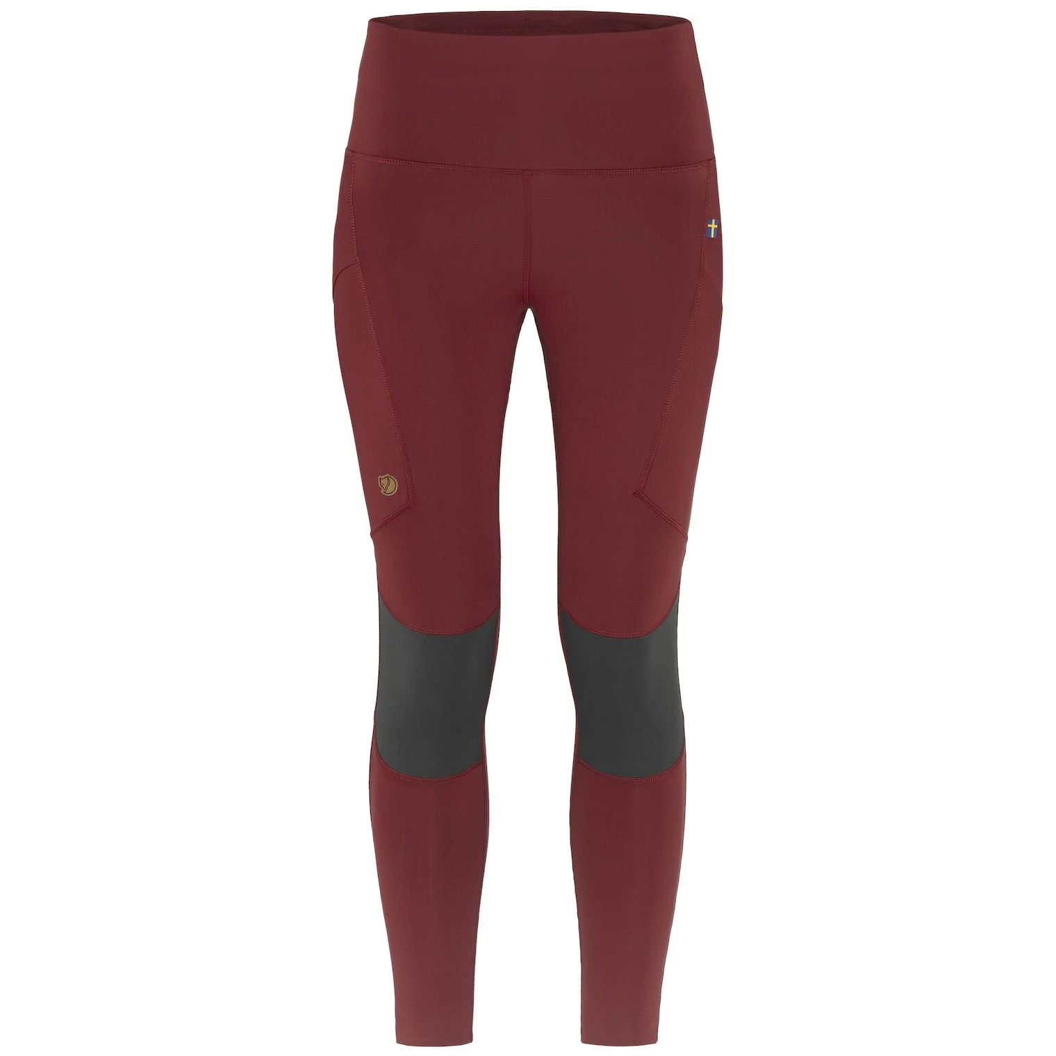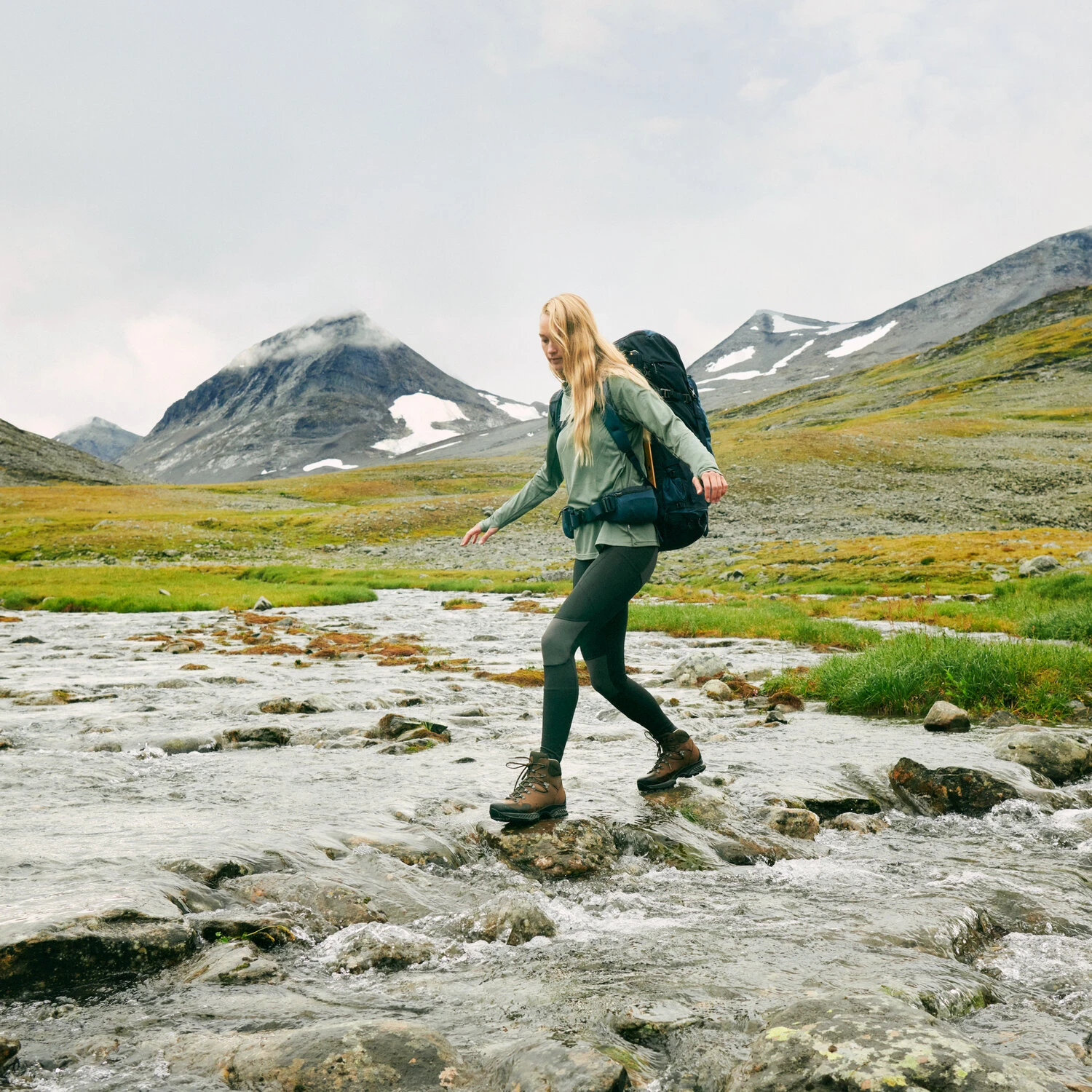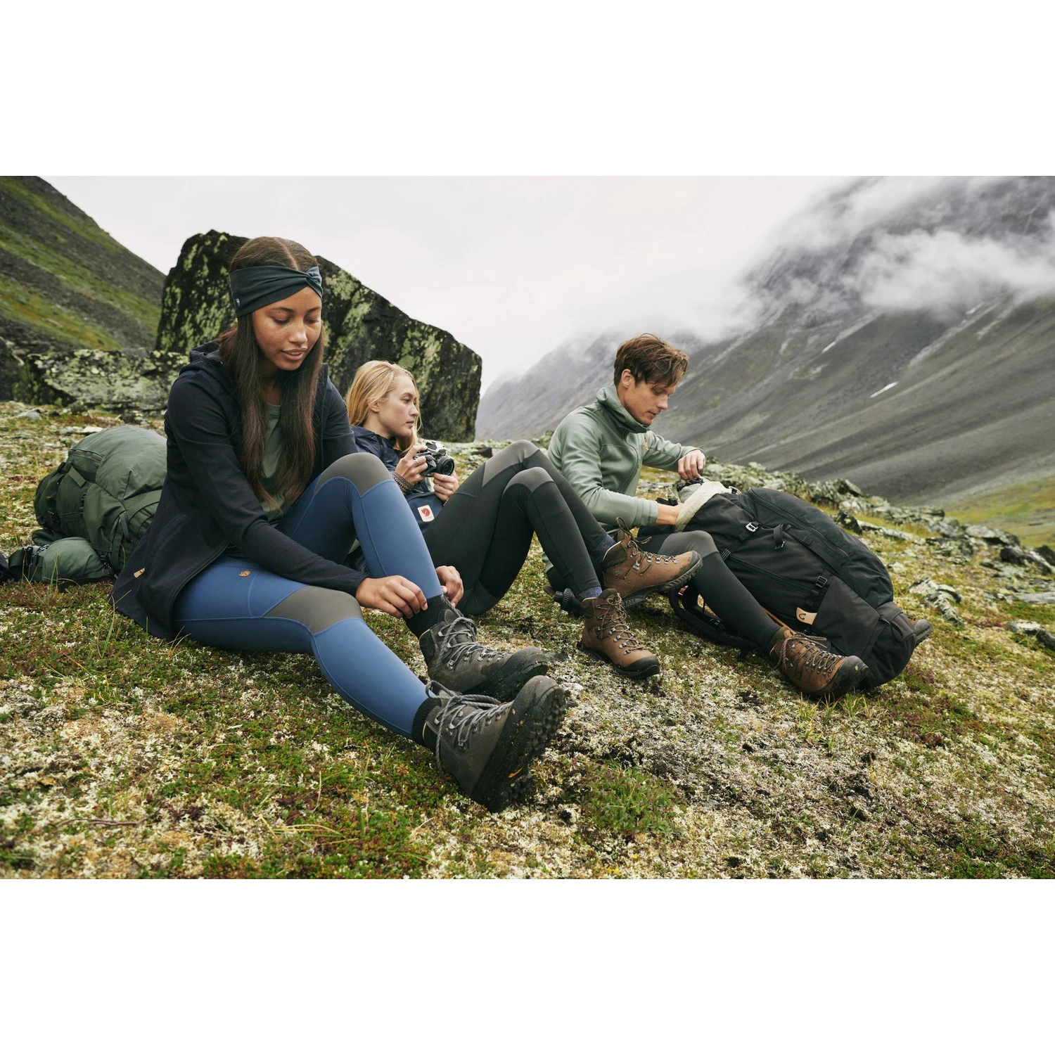 Las leggings para mujer Abisko Trekking Tights Pro W, técnicas y duraderas, de la marca sueca Fjällräven están confeccionadas con un tejido elástico muy funcional. Combinan la libertad de movimientos de unas mallas con la durabilidad de unos pantalones de trekking; los refuerzos en la espalda y las rodillas pueden soportar el contacto cercano con rocas y piedras afiladas, y también resisten la humedad al sentarse o arrodillarse sobre suelo mojado. Ideal para todo tipo de trekking en montaña y otros terrenos accidentados. Los prácticos bolsillos de las patas ofrecen espacio de almacenamiento. La cintura es ancha para mayor comodidad y se puede ajustar con un cordón en el interior. También hay un bolsillo de seguridad con cremallera y un pequeño lazo en el lado izquierdo para sujetar el equipo o una chaqueta ligera.