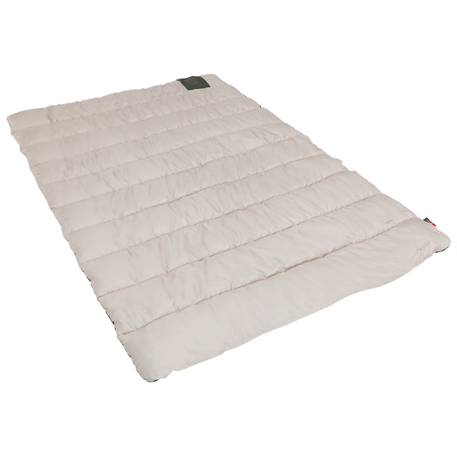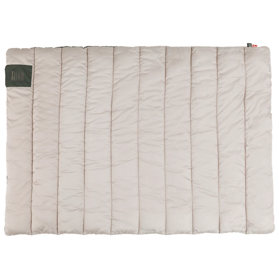 El relleno reciclado Isofill Premium proporciona un confort térmico único: las finas fibras huecas altamente siliconadas proporcionan un excelente aislamiento, mientras que el relleno es muy suave y agradable al tacto. Es de una sola capa, pero gracias al acolchado extra y al loft también es adecuado para su uso a temperaturas más bajas. La distribución óptima del aislamiento está garantizada por las cámaras acolchadas, que además confieren a la manta un aspecto elegante. El material en sí es poliéster cepillado, agradable al tacto. El paquete también incluye una práctica funda de compresión que facilita el transporte de la manta. Guarde la manta fuera de la envoltura de compresión.