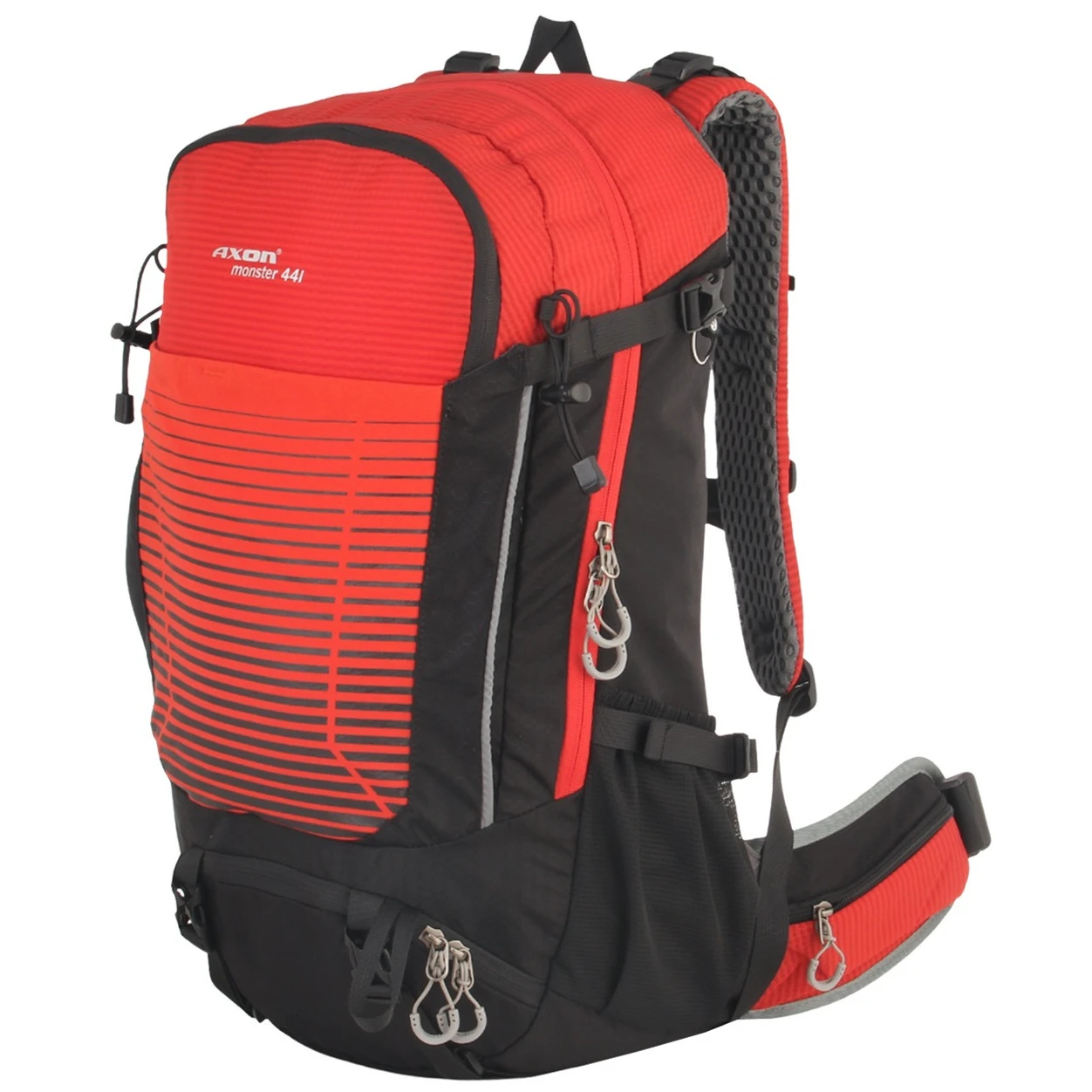 La mochila Axon Monster es una mochila de uso universal para excursiones de senderismo exigentes de uno o varios días. Tiene espalda acolchada ventilada Airconntact con cinturón lumbar acolchado con bolsillos con cremallera.