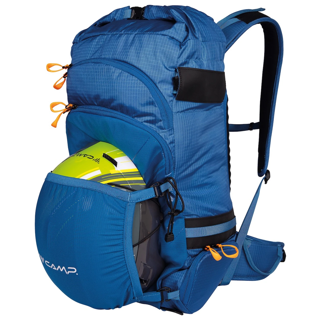 El bolsillo para avalanchas independiente permite un acceso rápido a la pala y la sonda, mientras que al bolsillo aislado para crampones se puede acceder sin quitarse la mochila, pero también se puede abrir desde el interior. La mochila tiene hebillas laterales de liberación rápida ajustables para llevar los esquíes en forma de A, dos sistemas ocultos para llevar piolets con fundas para sujetar las puntas, posibilidad de fijar el casco y bastones.