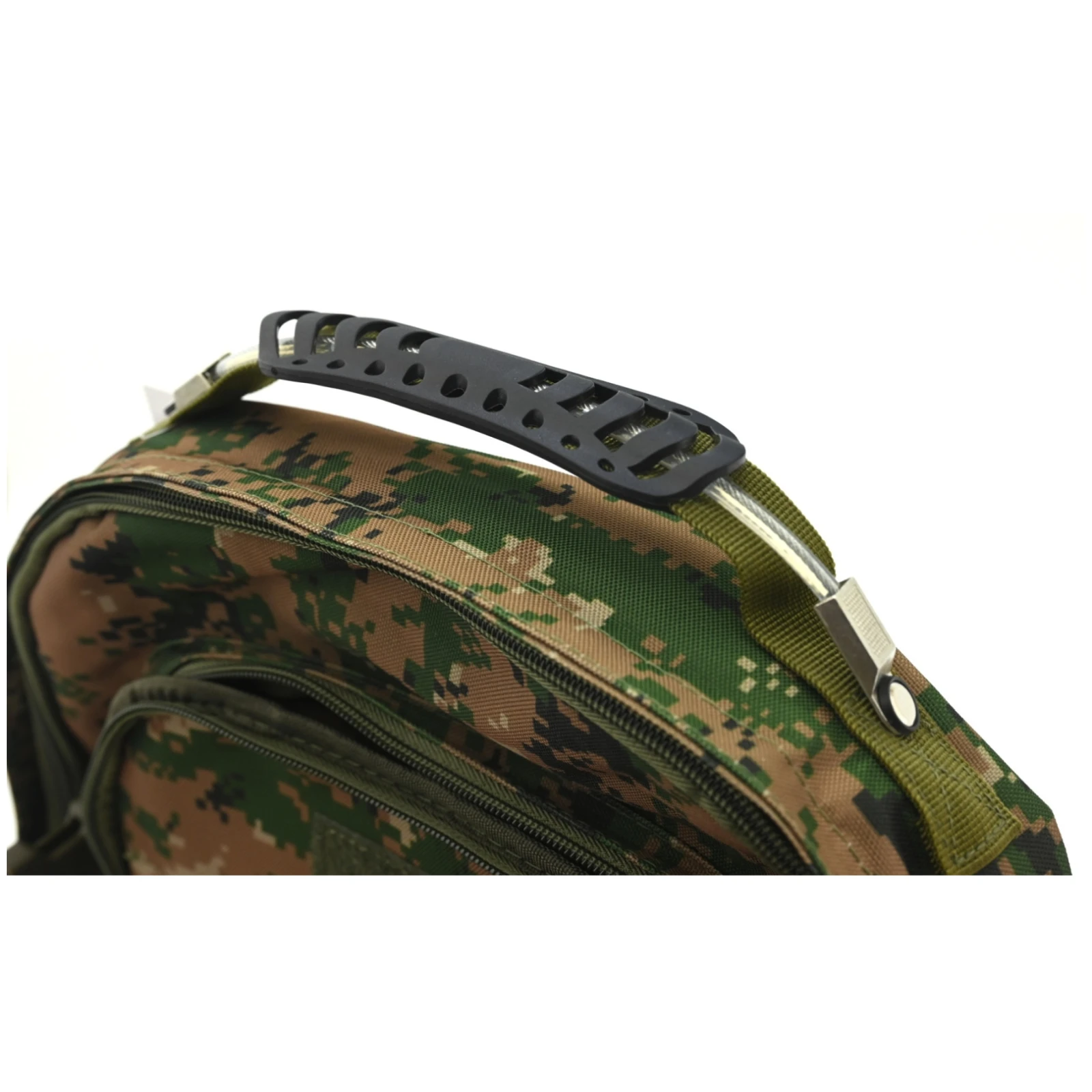 La mochila Cattara Army Digital 25L ofrece un amplio espacio de almacenamiento, incluyendo múltiples bolsillos, correas de compresión y un sistema MOLLE para sujetar equipo adicional.