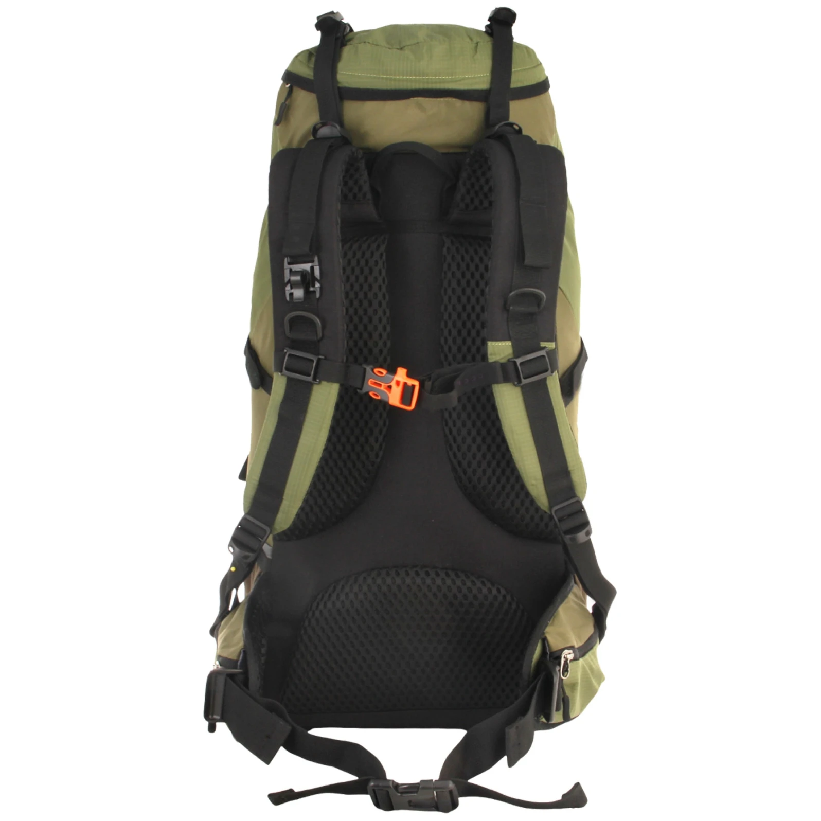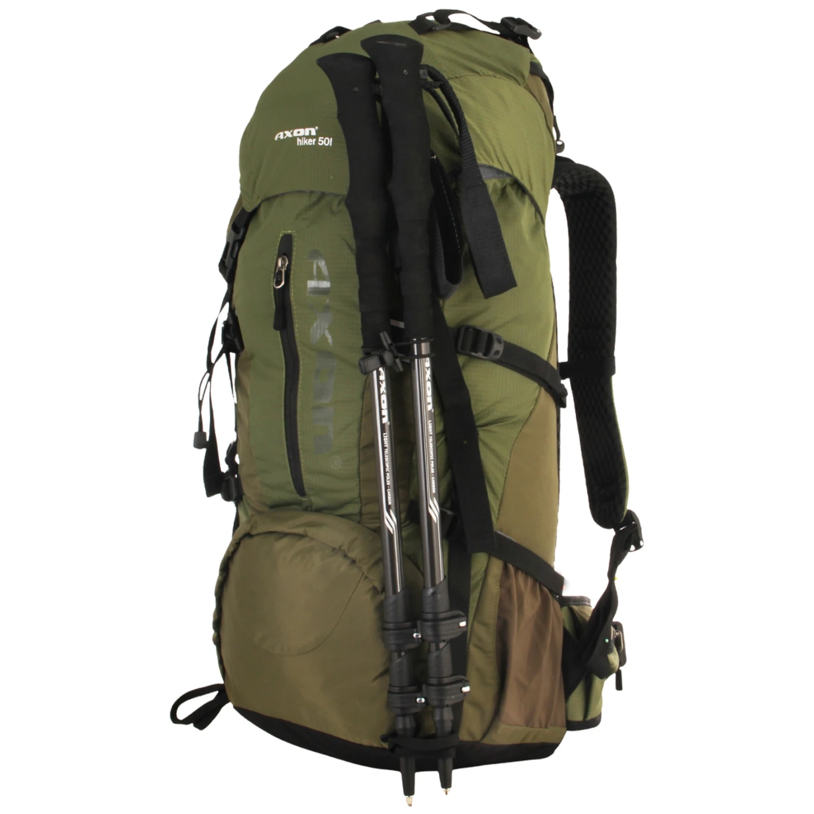 La mochila Hiker de la marca checa AXON tiene un sistema de espalda AVS acolchado y ventilado. Los tirantes con elementos de equilibrio para los hombros con acolchado reforzado tienen forma anatómica con una correa para el pecho ajustable en altura con silbato. Una correa acolchada en la cintura con bolsillos con cremallera y correas de compresión laterales garantizan un ajuste firme y cómodo en la espalda.