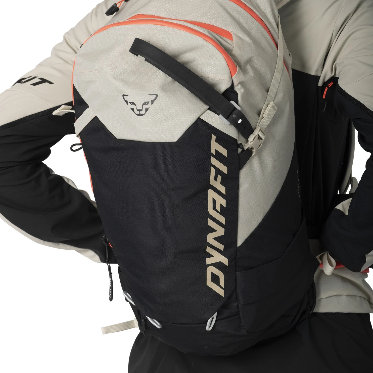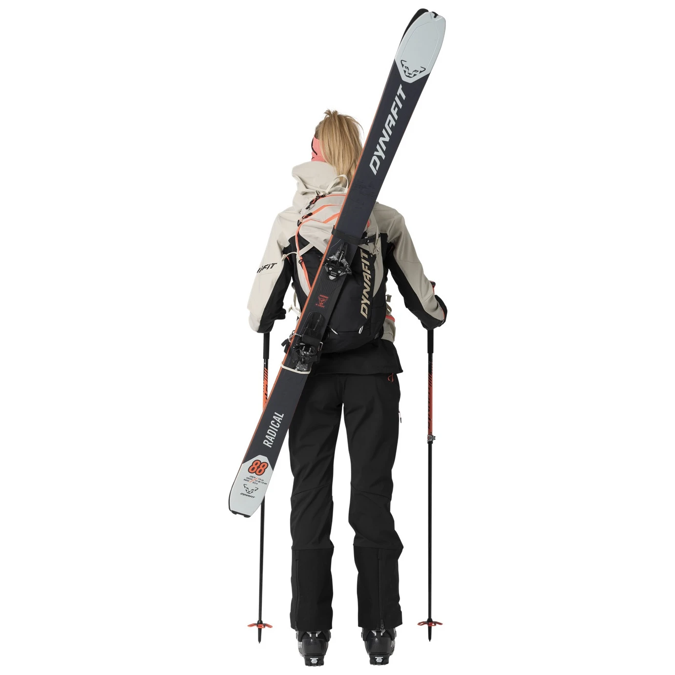 La mochila Ridge 24 Backpack W de la marca Dynafit tiene mucho espacio de almacenamiento y una organización inteligente. El compartimento independiente para crampones protege tu equipo y permite un acceso rápido. Otros compartimentos para el equipo de seguridad y los soportes para esquíes, cascos y piolets mantienen las cosas en orden. El sistema de transporte bien ventilado ofrece un alto nivel de comodidad, mientras que el robusto material Cordura® de nailon reciclado resiste fácilmente el contacto con las rocas.