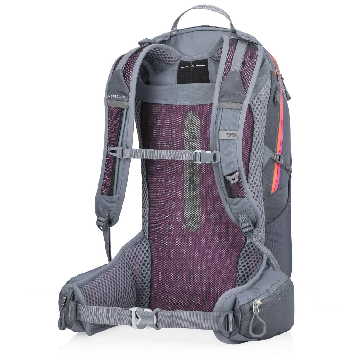 Mochila universal para movimiento activo, es decir, Gregory Maya 22. Puedes llevarla en un viaje en bicicleta, en una carrera más larga o en una excursión de un día por el campo. Sistema de espalda BioSync adaptado a la figura femenina: elementos flexibles en los tirantes y el cinturón garantizan un ajuste perfecto a la espalda. La mochila es ligera, transpirable y se adapta a los movimientos de tu cuerpo. La longitud delsistema de transporte se puede ajustar y la mochila se adapta a todos los cuerpos.