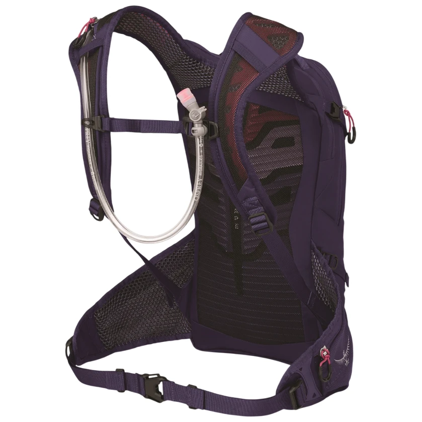 También apreciará el soporte para casco de bicicleta LidLock, el accesorio de luz intermitente y el parche de seguridad reflectante, la bolsa de herramientas enrollable extraíble y la bolsa de hidratación para el tanque Hydraulics™ de 2,5 L Osprey (se vende por separado) con Acceso directo con cremallera y manguera para facilitar la carga.