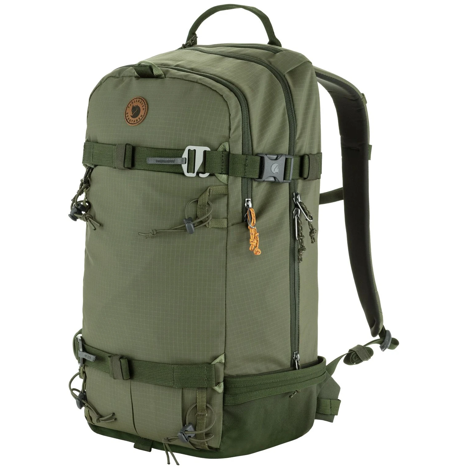 La mochila Bergtagen Touring 22 de Fjällräven está diseñada para exigentes expediciones de montaña, esquí de travesía y excursiones invernales. Ofrece 22 litros de capacidad, que se distribuyen en compartimentos prácticamente organizados, incluyendo un espacioso bolsillo principal, un espacio dedicado para el equipo de avalanchas y varios bolsillos más pequeños para objetos pequeños. La mochila cuenta con un inteligente sistema de tres vías para sujetar esquíes o una tabla de snowboard – posibilidad vertical, diagonal o en forma de “A” – y una red extraíble para el casco, que se puede guardar en un bolsillo frontal oculto.